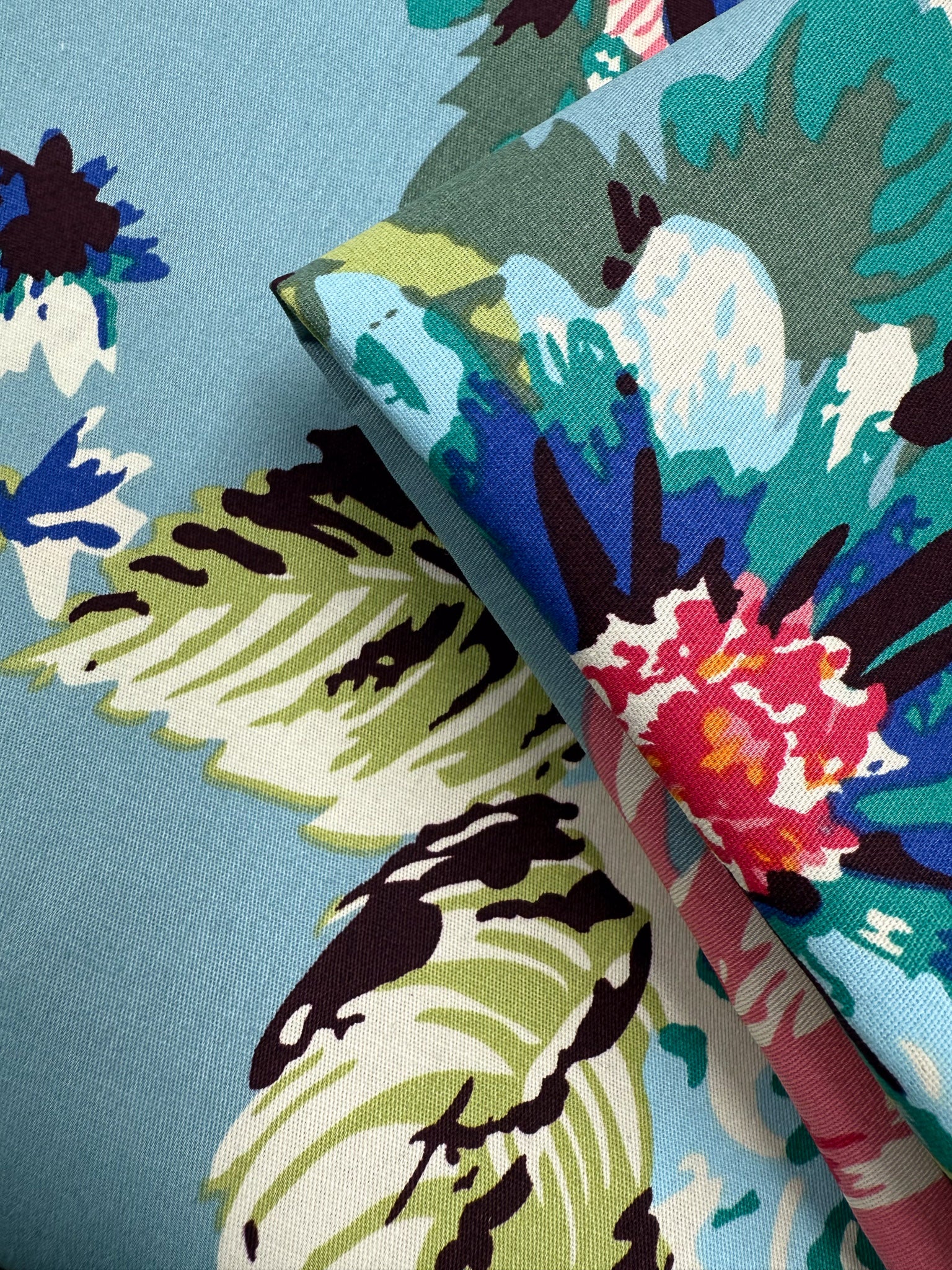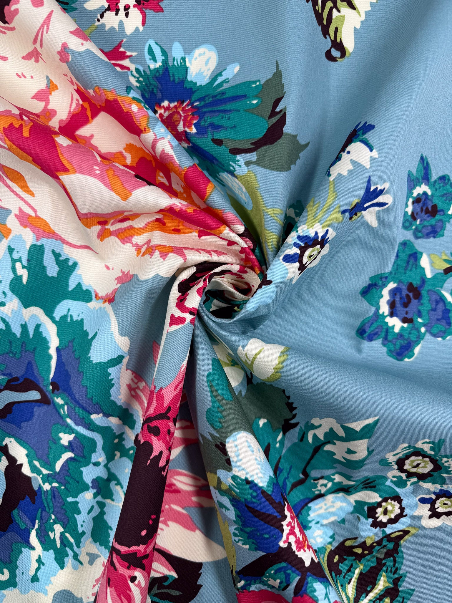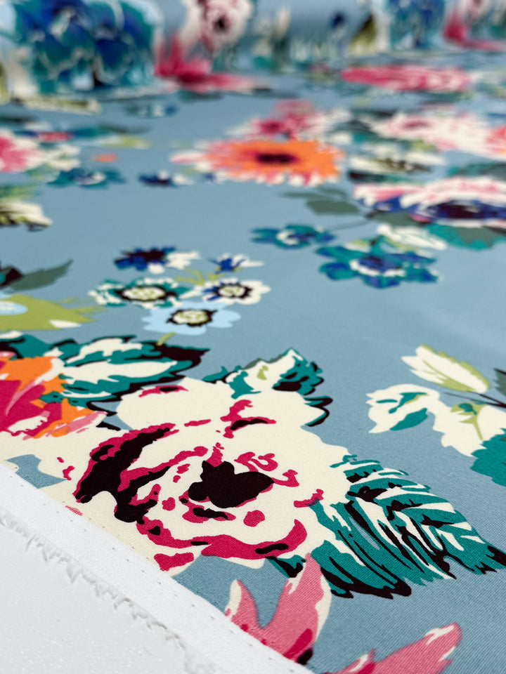 Cotton Sateen - Dusty Blue Foral - 145cm
