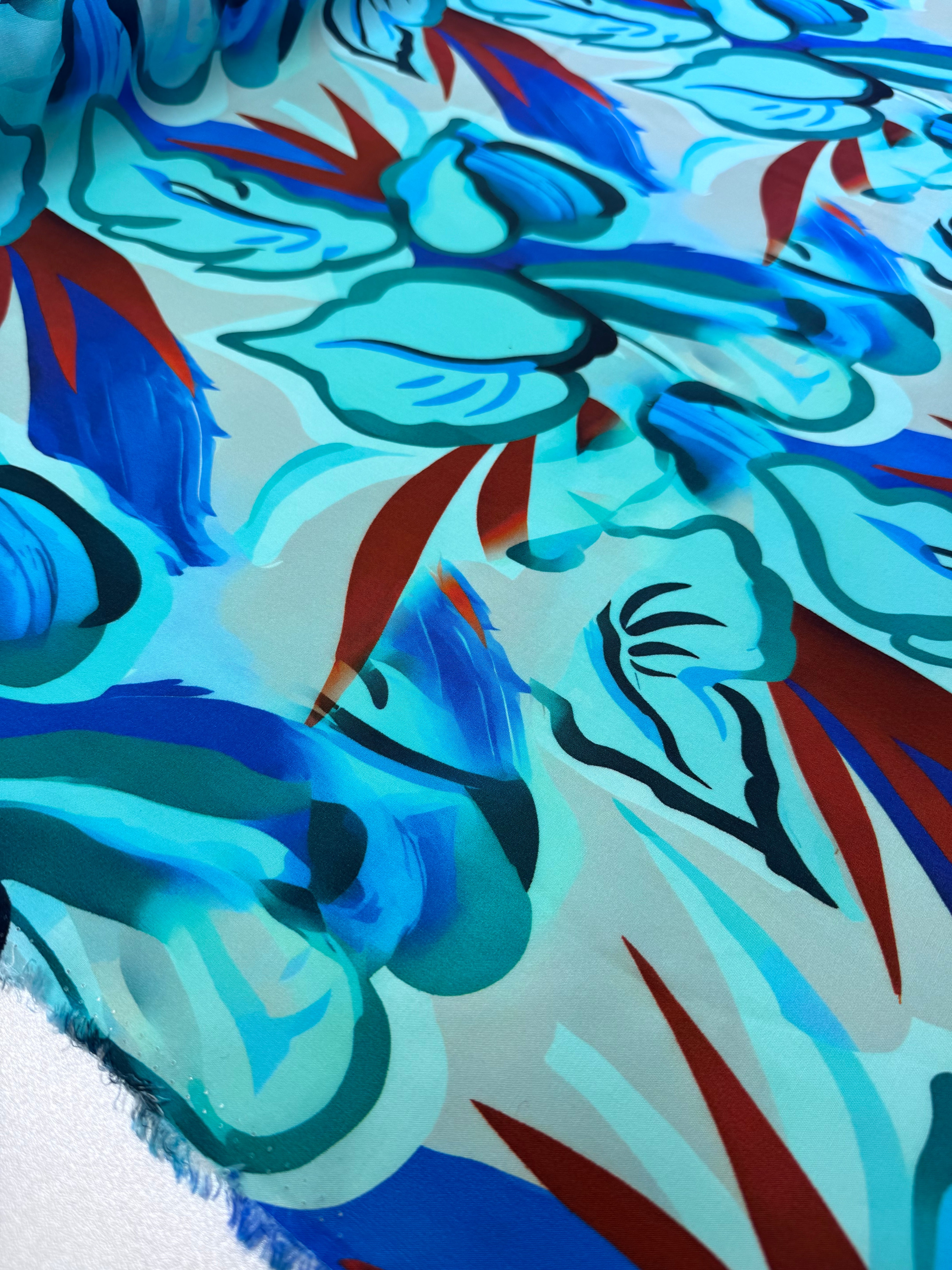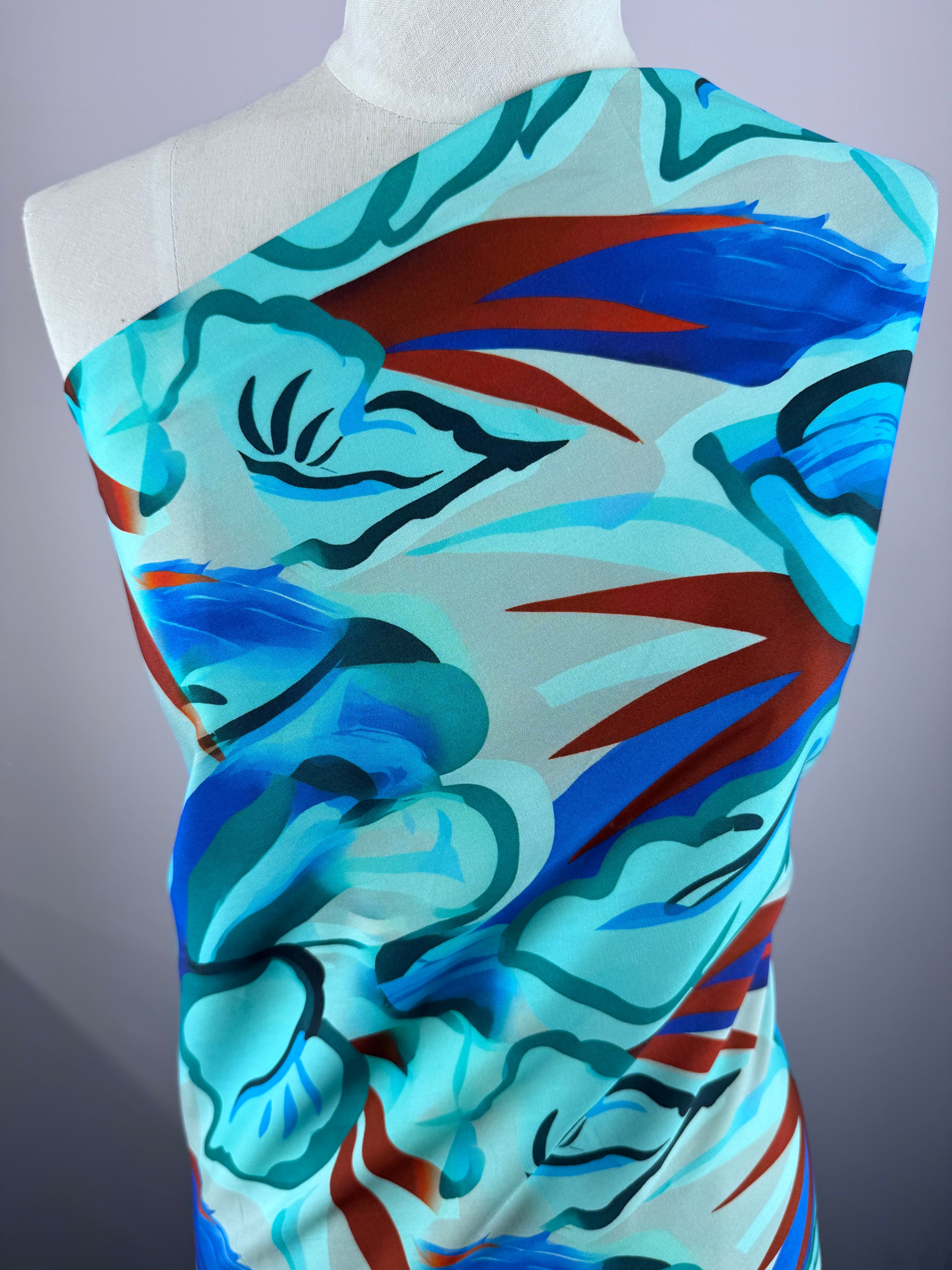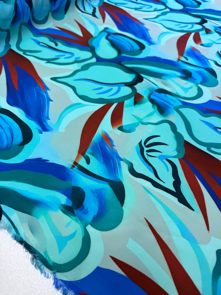 Our Designer Rayon showcases a beautiful and colourful fabric with vibrant prints that can be used for various purposes such as dresses, skirts, blouses, curtains, and more. Our collection showcases a soft, lightweight fabric with a smooth drape and a luxurious feel. Overall, rayon fabric offers both comfort and style, making it a versatile choice for any project.