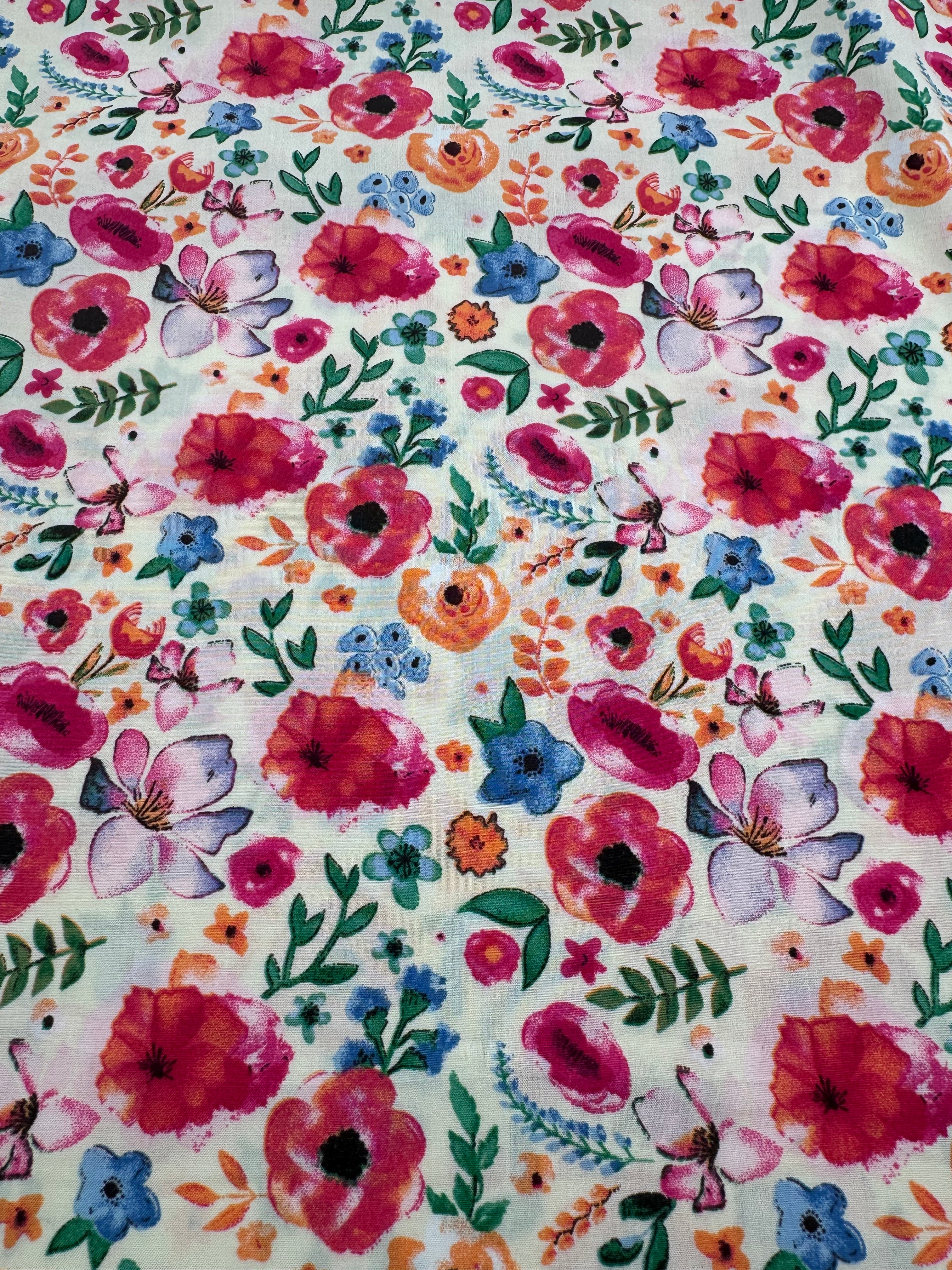 Our Designer Rayon showcases a beautiful and colourful fabric with vibrant prints that can be used for various purposes such as dresses, skirts, blouses, curtains, and more. Our collection showcases a soft, lightweight fabric with a smooth drape and a luxurious feel. Overall, rayon fabric offers both comfort and style, making it a versatile choice for any project. Midnight Tropic showcases an expressive leaf pattern in shades of cobalt, amber, and ivory layered over a rich navy base.