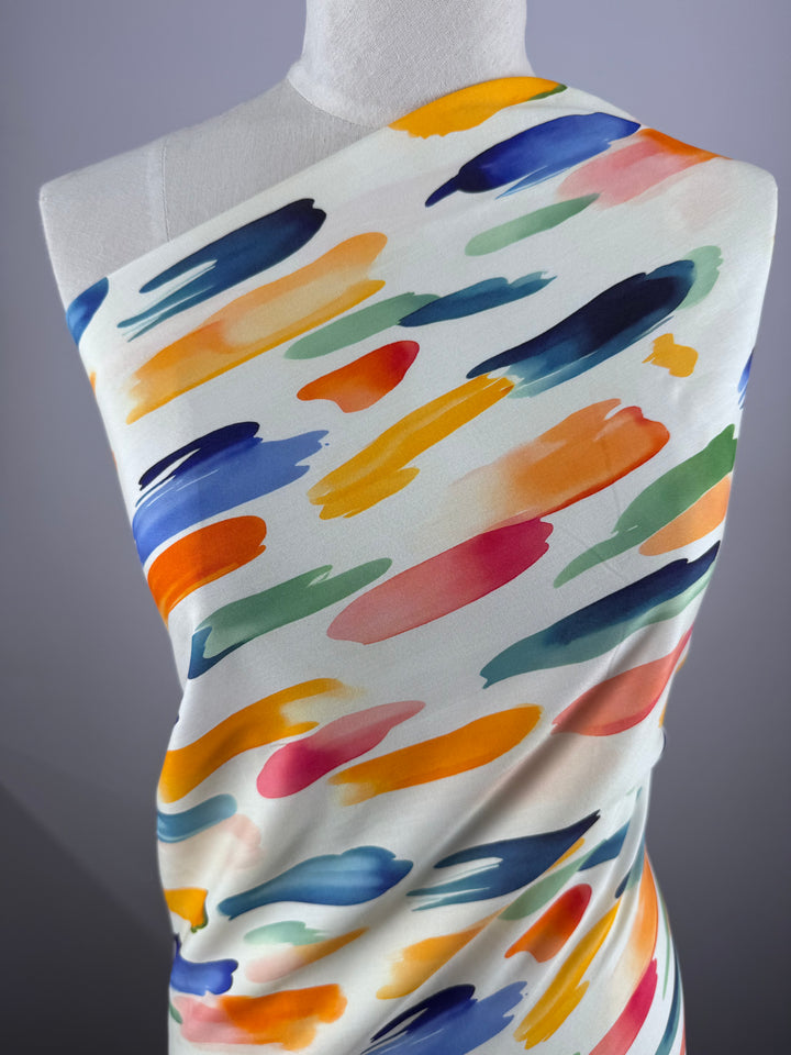 Our Designer Rayon showcases a beautiful and colourful fabric with vibrant prints that can be used for various purposes such as dresses, skirts, blouses, curtains, and more. Our collection showcases a soft, lightweight fabric with a smooth drape and a luxurious feel. Overall, rayon fabric offers both comfort and style, making it a versatile choice for any project.
