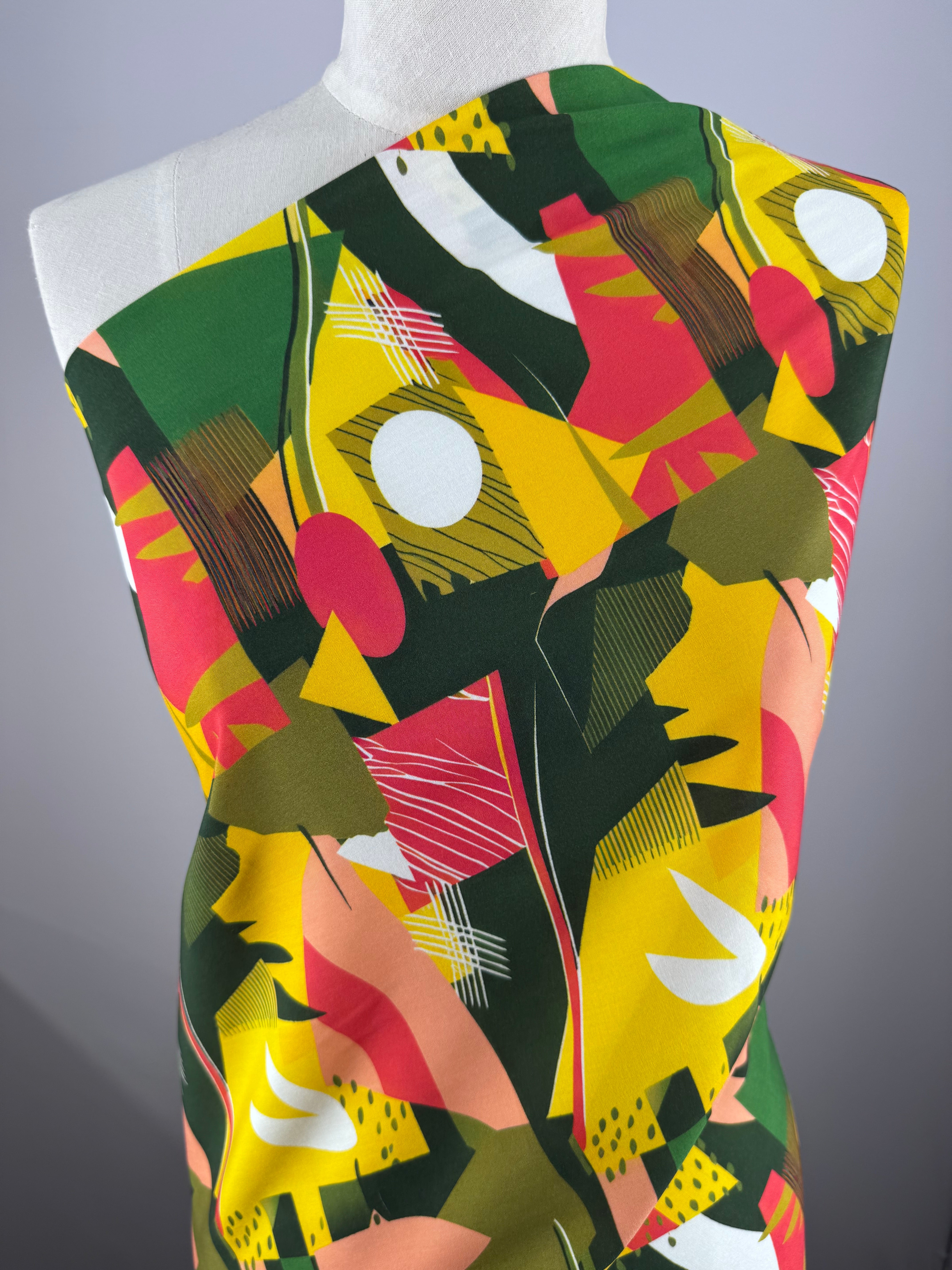 Our Designer Rayon showcases a beautiful and colourful fabric with vibrant prints that can be used for various purposes such as dresses, skirts, blouses, curtains, and more. Our collection showcases a soft, lightweight fabric with a smooth drape and a luxurious feel. Overall, rayon fabric offers both comfort and style, making it a versatile choice for any project.