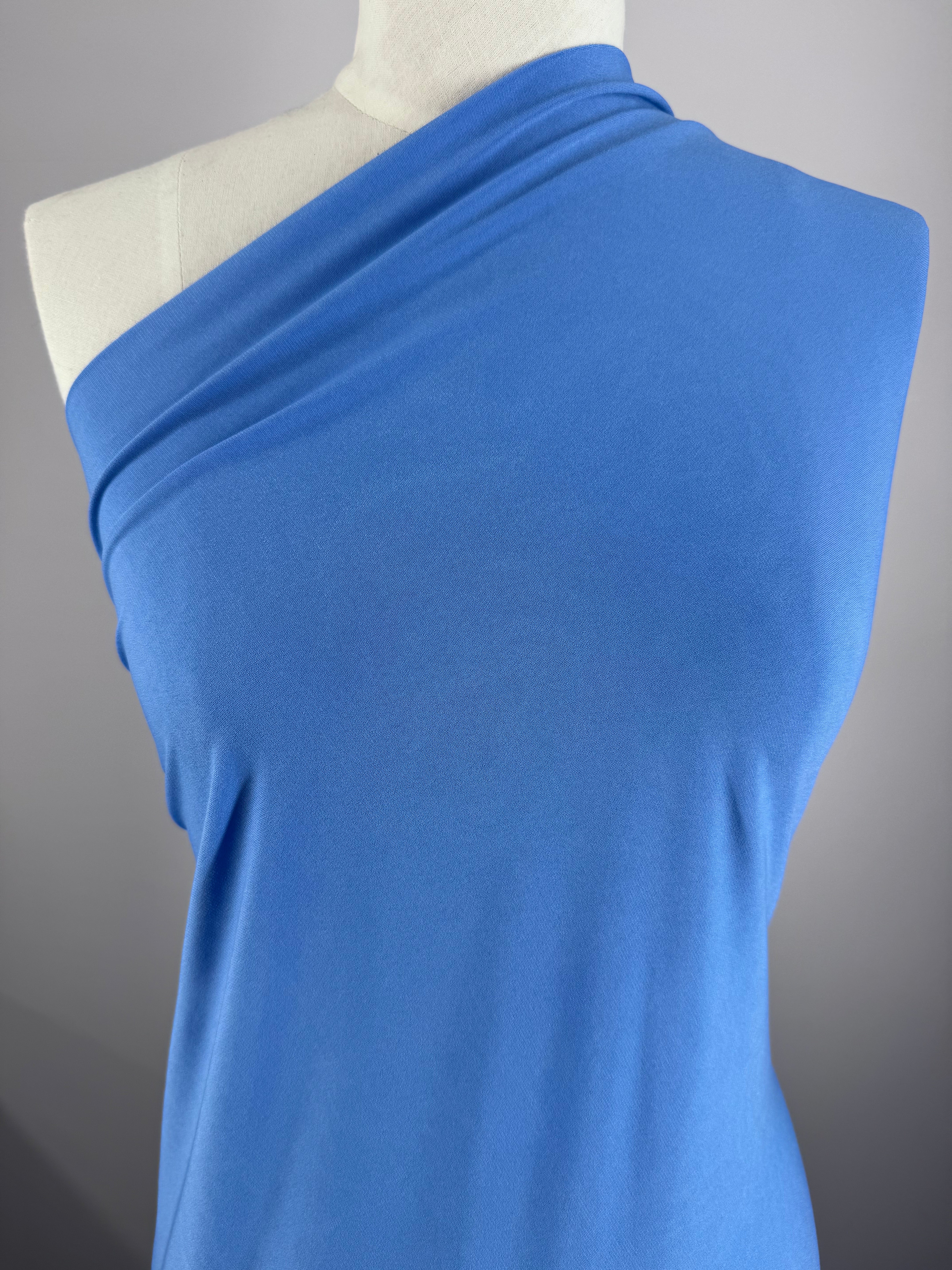 Interlock twist yarn fabric. This opaque fabric has been knit to have great elasticity and a soft touch. This medium weight fabric is the perfect weight for tops, dresses skirts and loose pants.