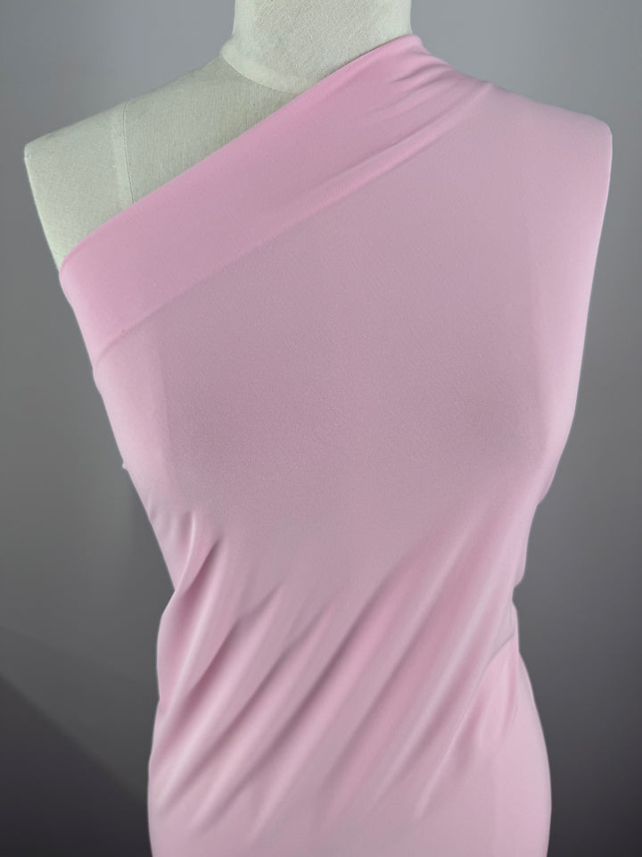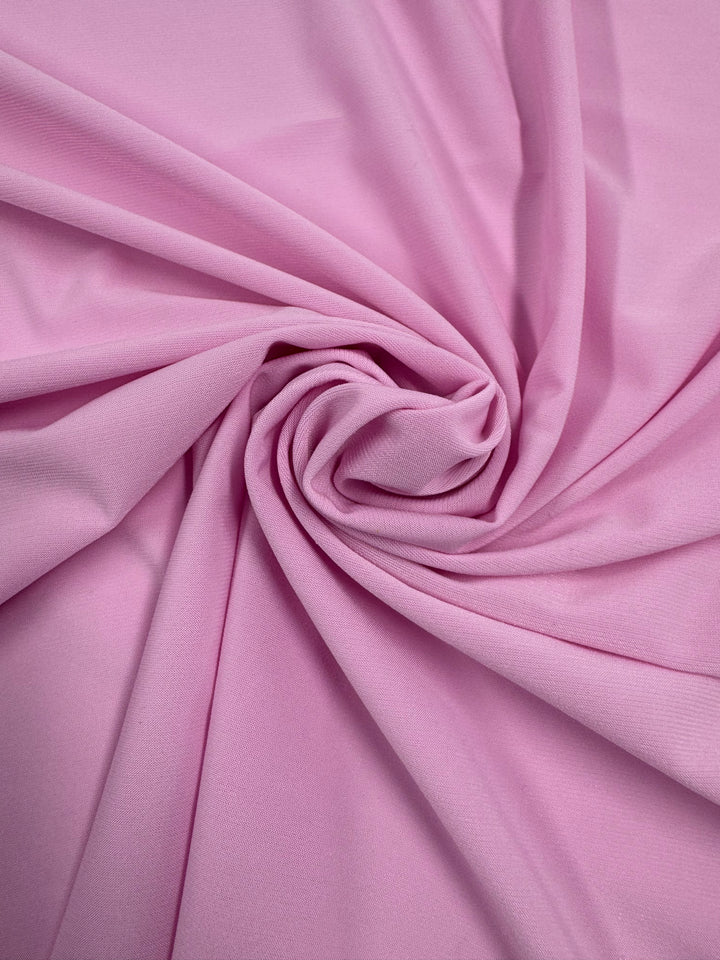 Interlock twist yarn fabric. This opaque fabric has been knit to have great elasticity and a soft touch. This medium weight fabric is the perfect weight for tops, dresses skirts and loose pants.