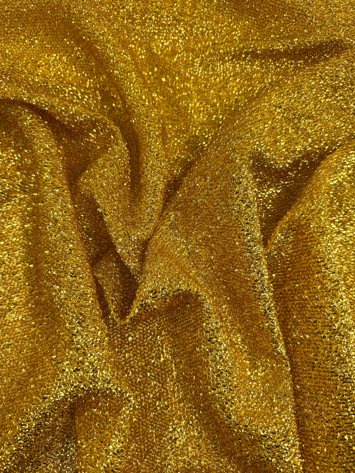 A soft, flexible Lurex Stretch Knit designed with a subtle shimmer and a comfortable stretch. This fabric drapes beautifully, offering a smooth feel with added elasticity that makes it easy to sew and flattering to wear. The knitted structure provides breathability while the metallic thread adds a touch of refinement, making it ideal for both casual and elevated looks. Versatile, durable, and perfect for garments or creative projects that need movement and a hint of shine.