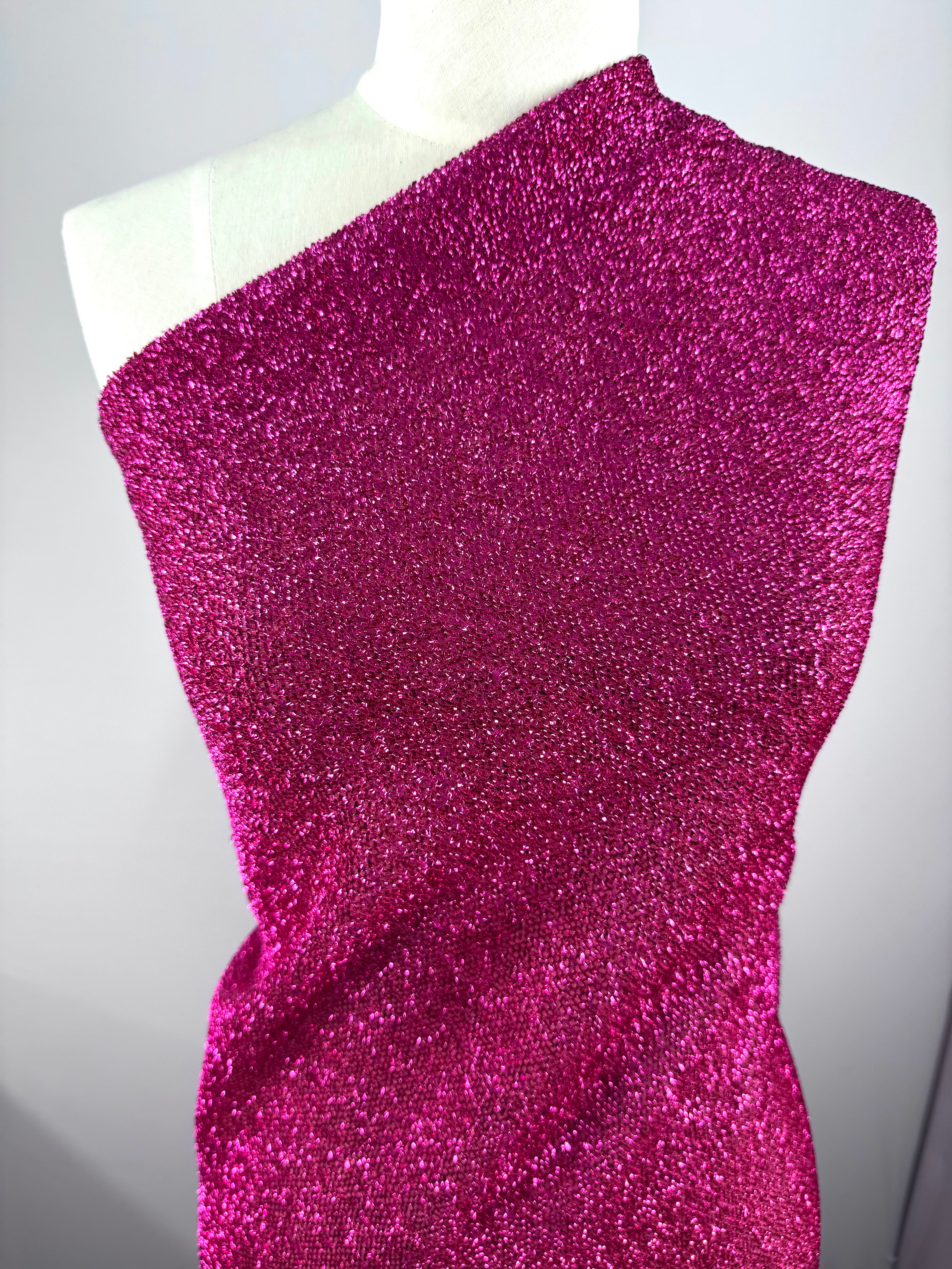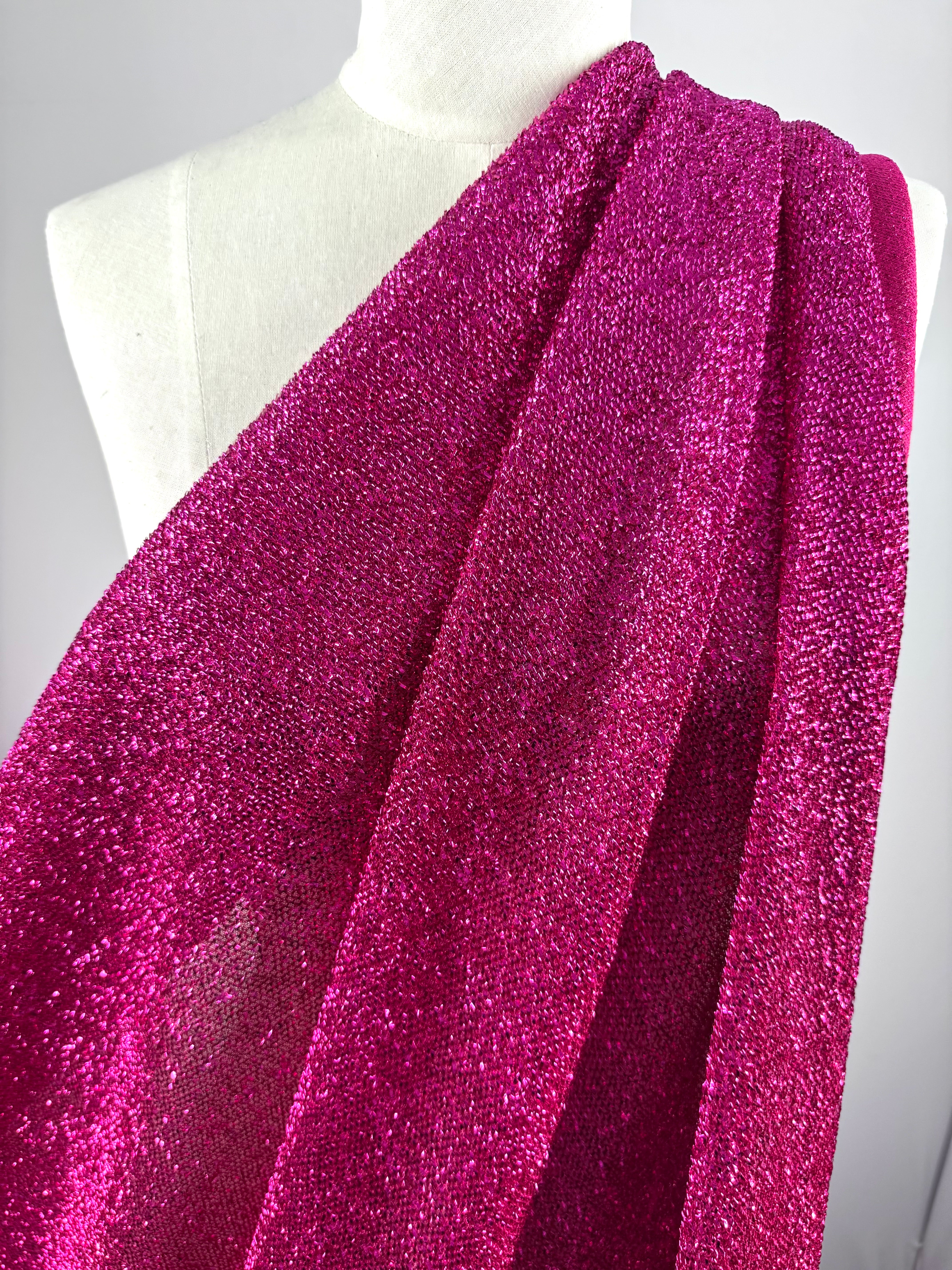 A soft, flexible Lurex Stretch Knit designed with a subtle shimmer and a comfortable stretch. This fabric drapes beautifully, offering a smooth feel with added elasticity that makes it easy to sew and flattering to wear. The knitted structure provides breathability while the metallic thread adds a touch of refinement, making it ideal for both casual and elevated looks. Versatile, durable, and perfect for garments or creative projects that need movement and a hint of shine.