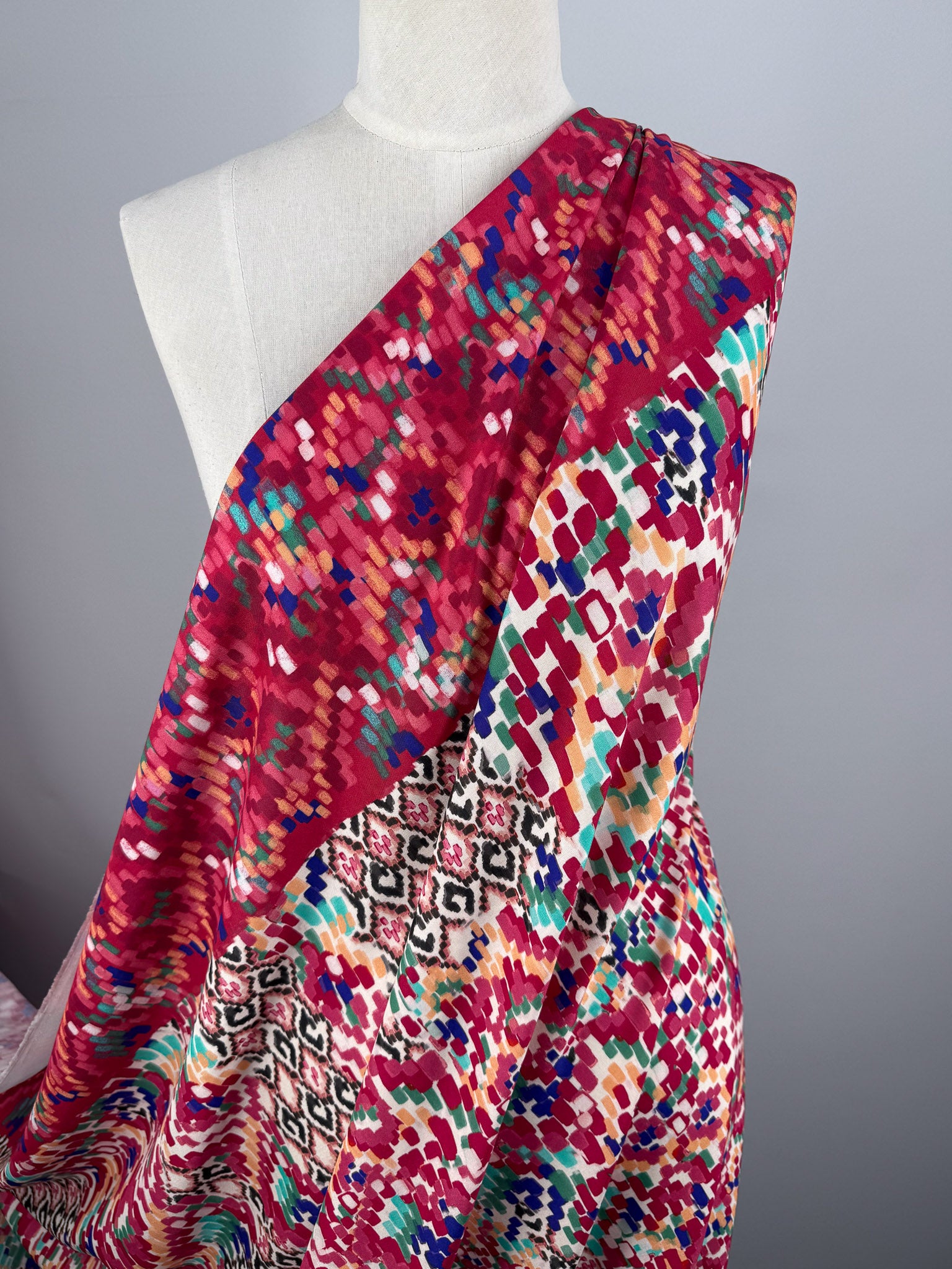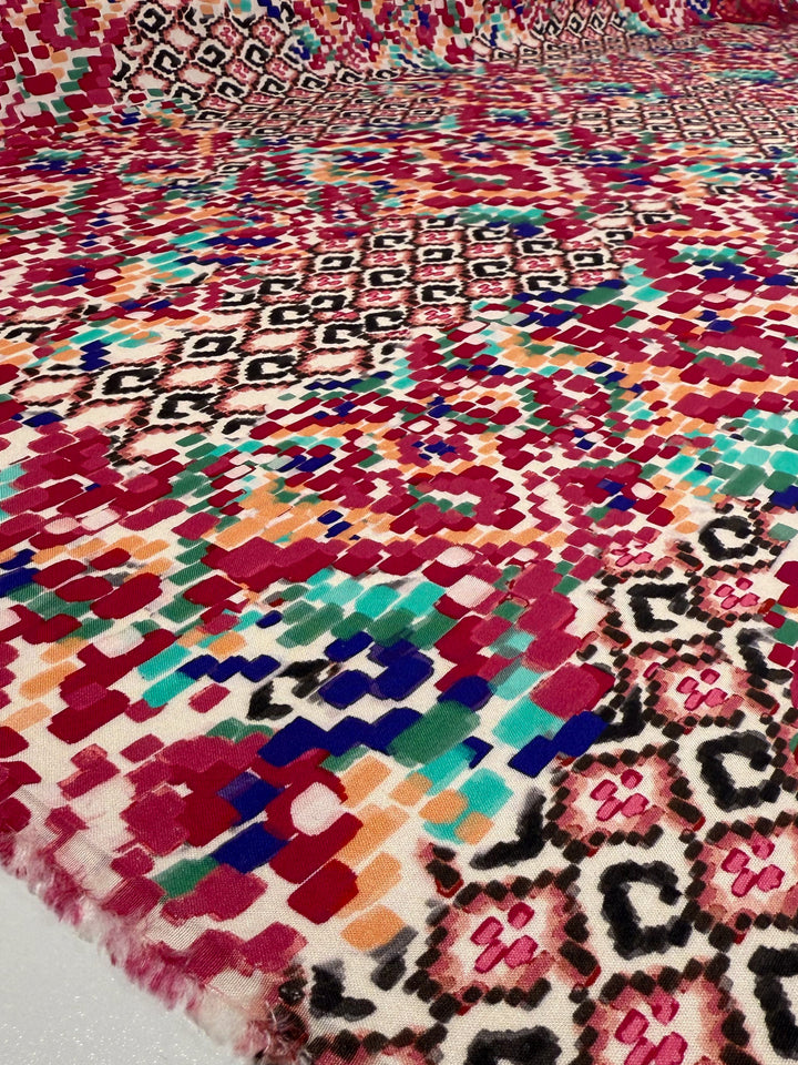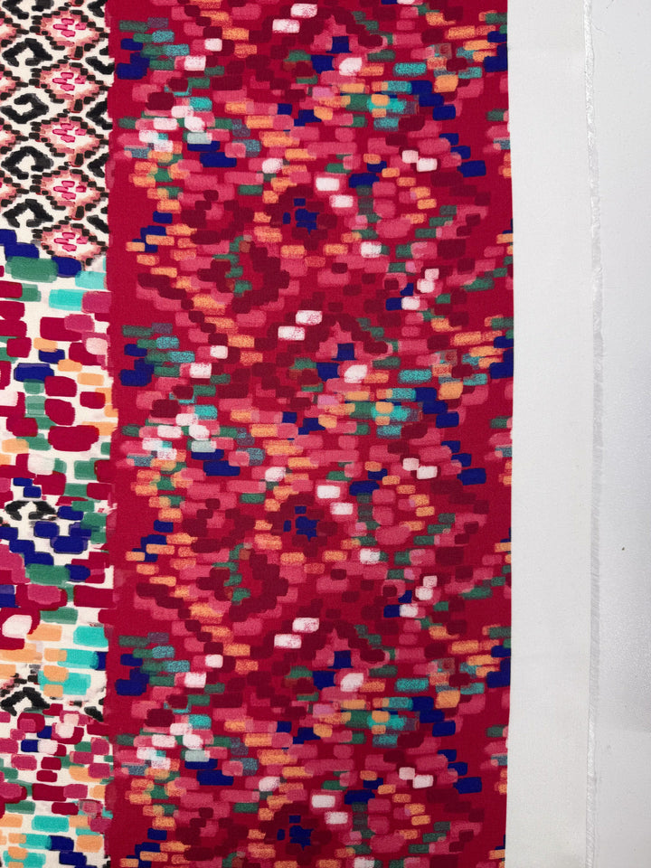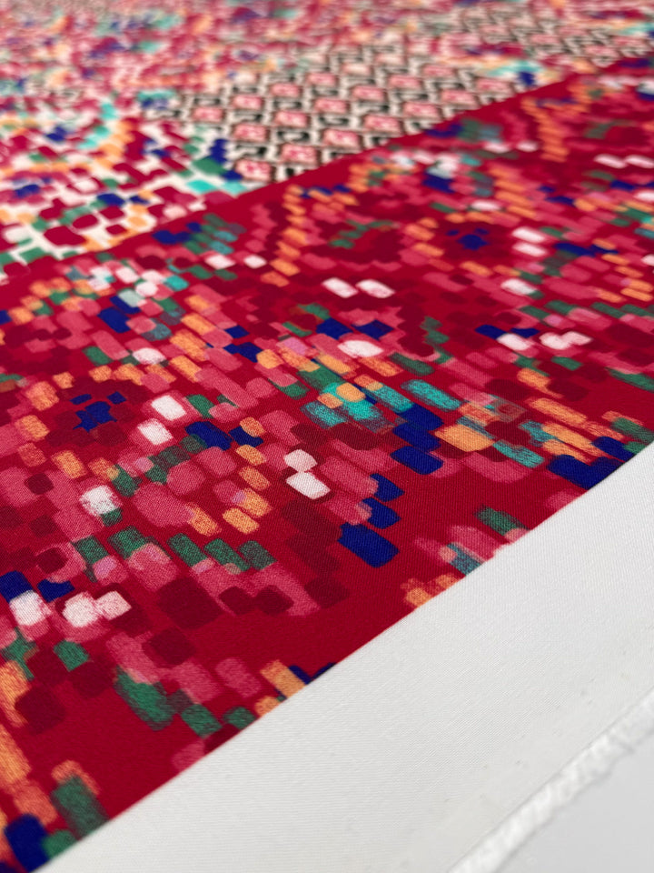 Mercerised Viscose - Crimson Mosaic - 140cm