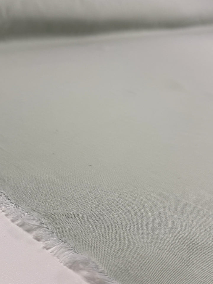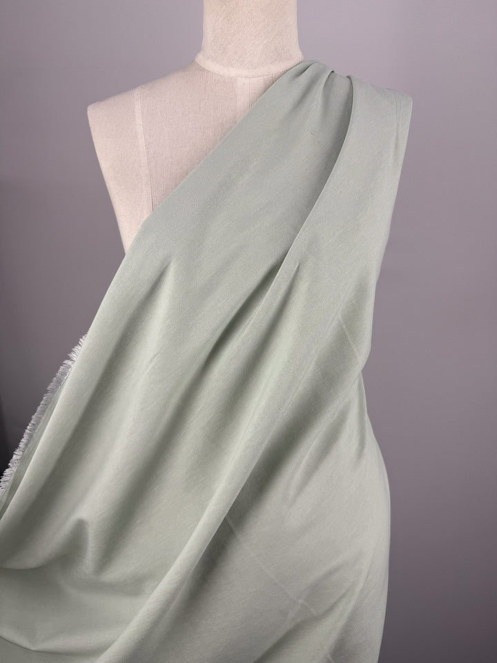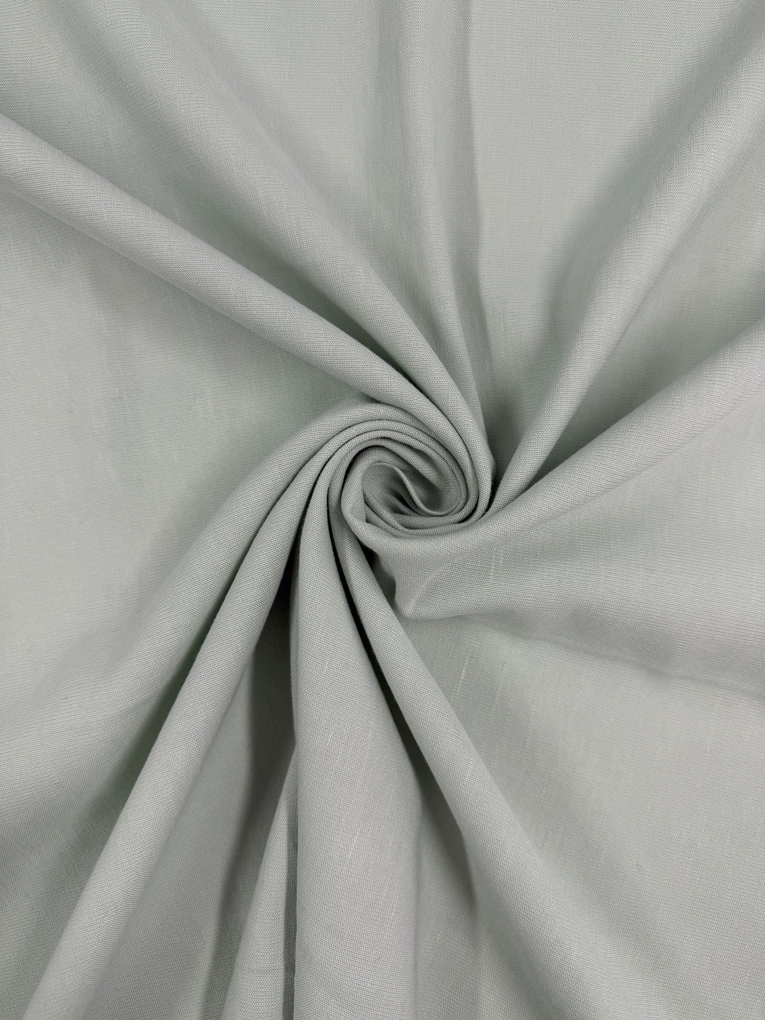 A stretch oxford linen pale green linen with a fresh, airy tone.
