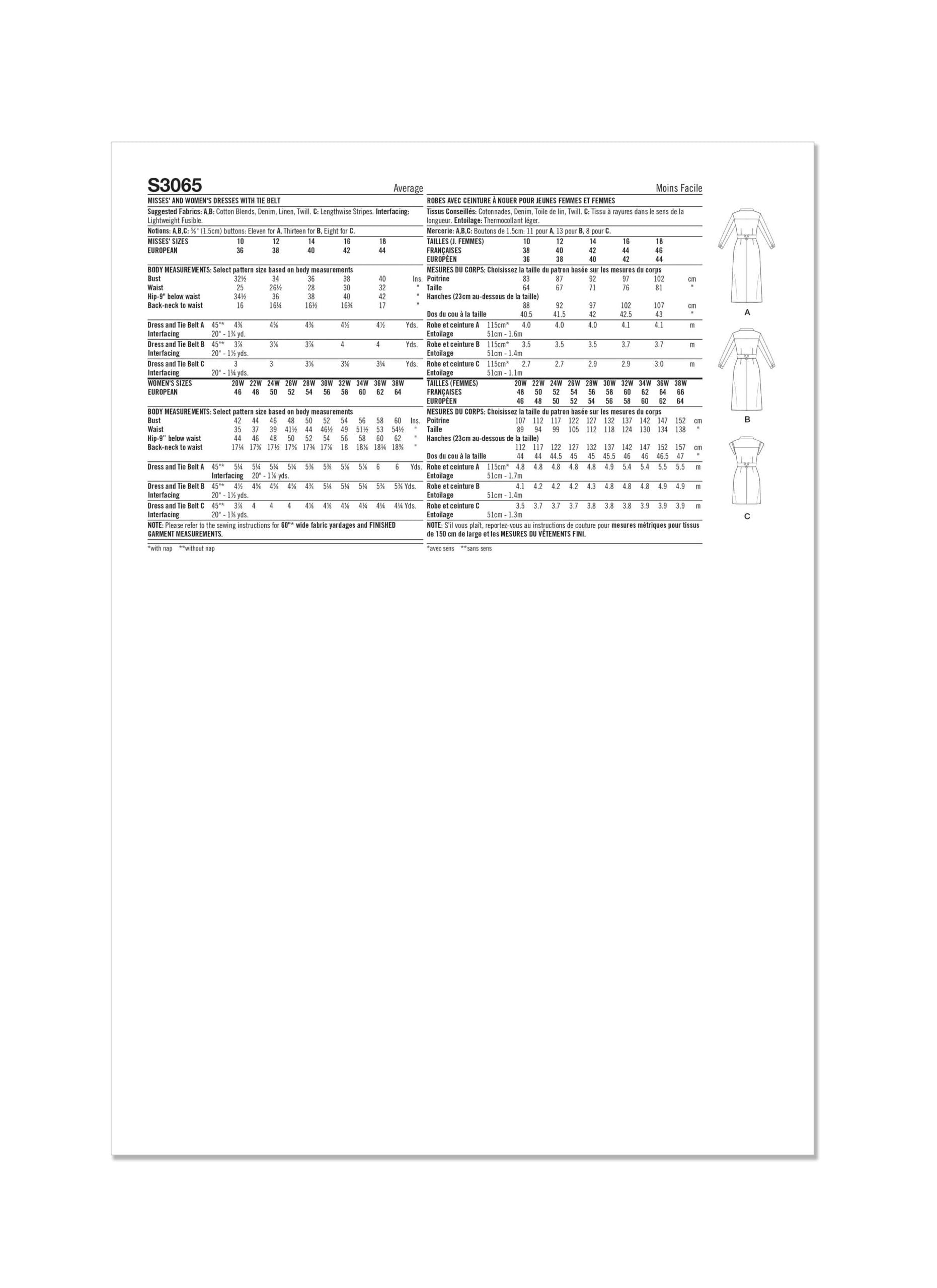 Pattern - Simplicity - S3065 - Misses’ and Women’s Dresses with Tie Belt