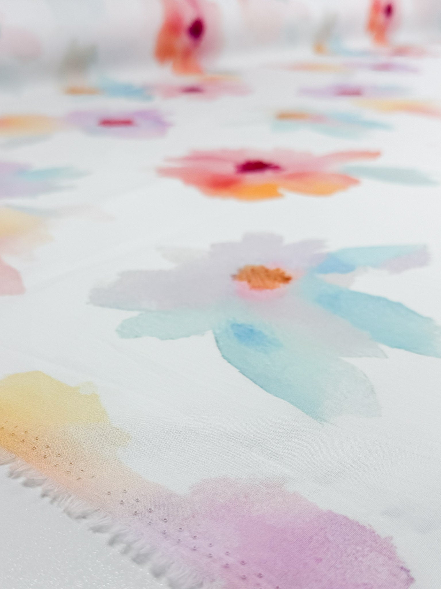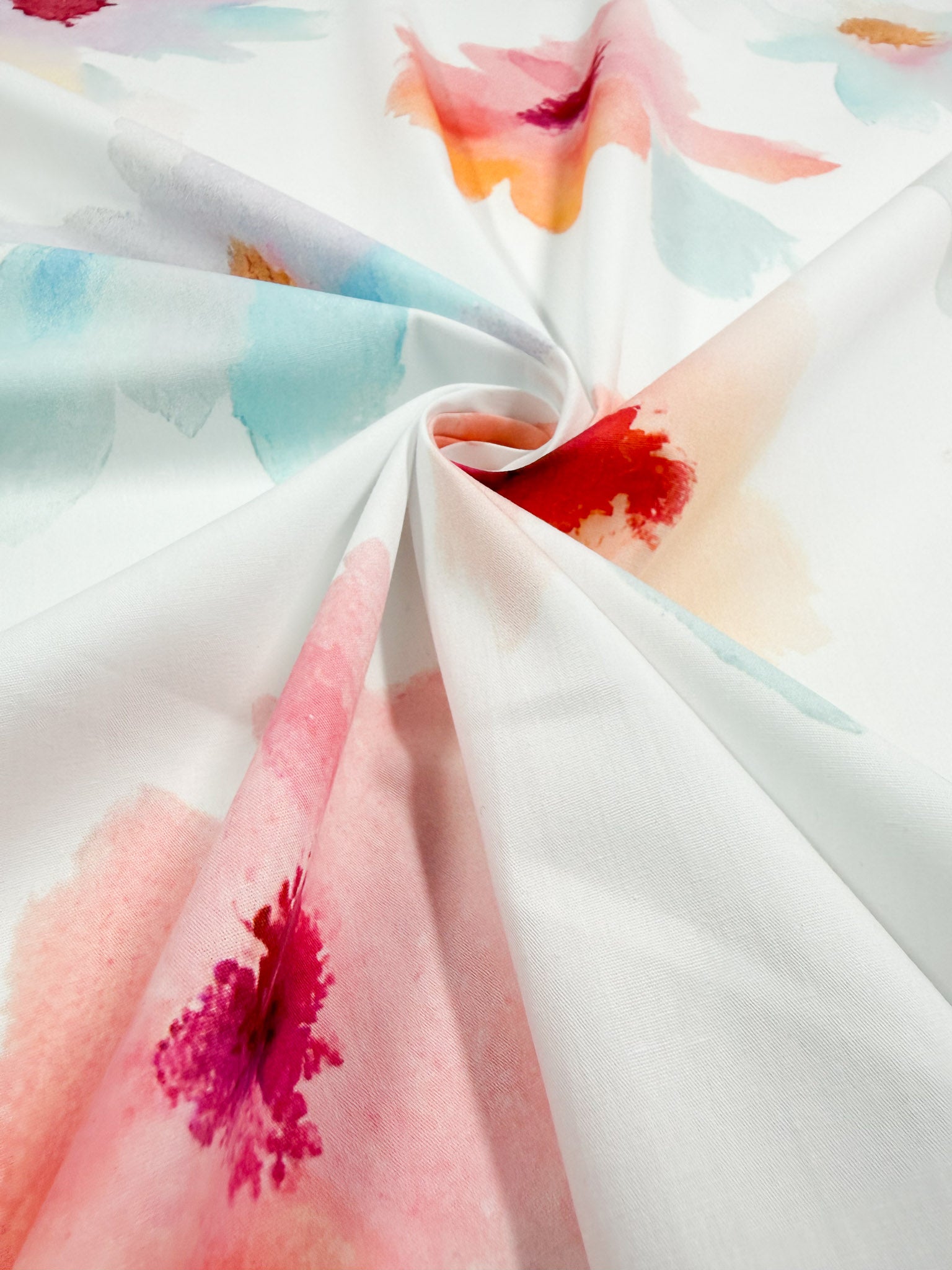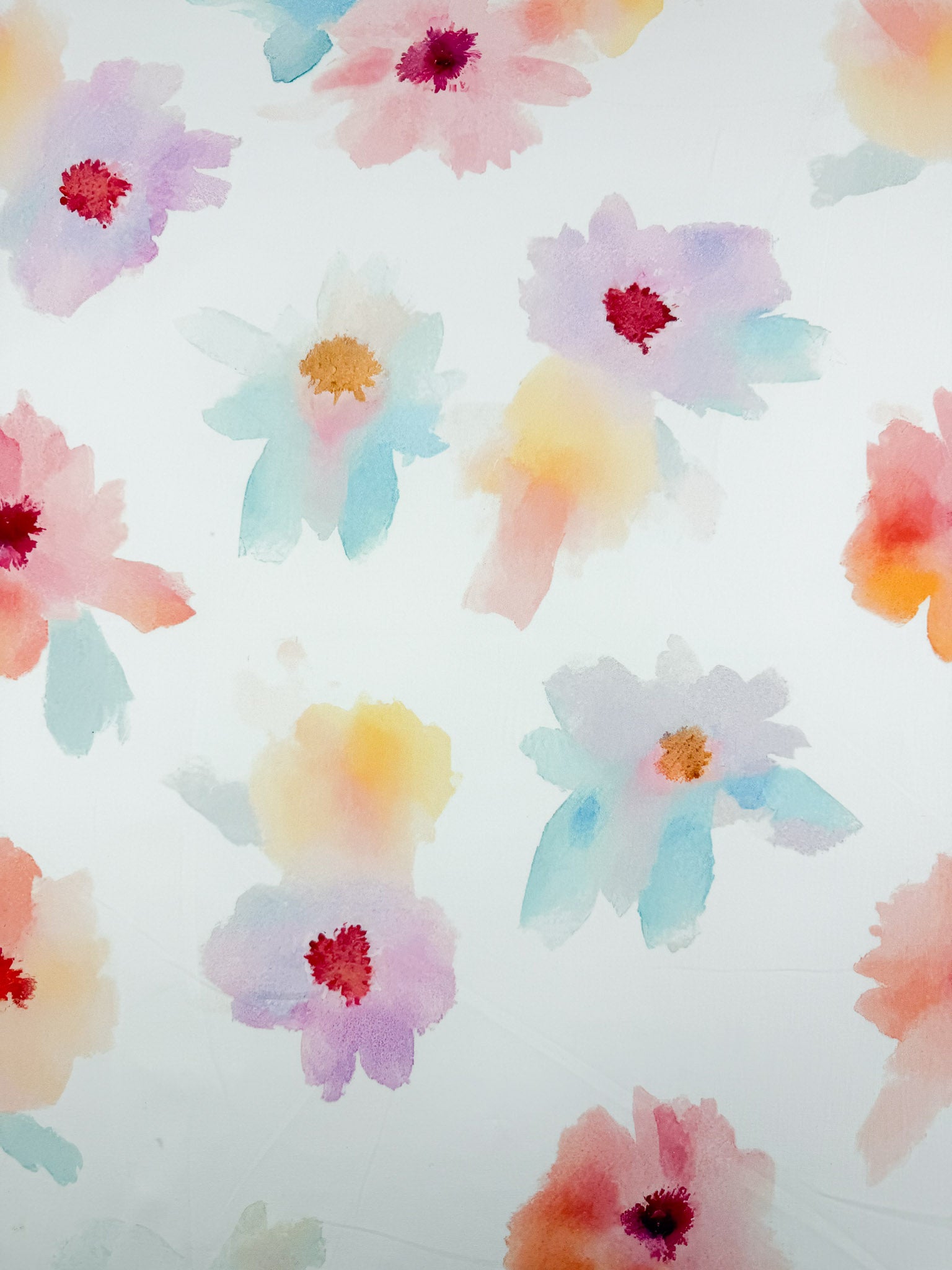 Colour: White Backing, Multi Watercolour Flowers
