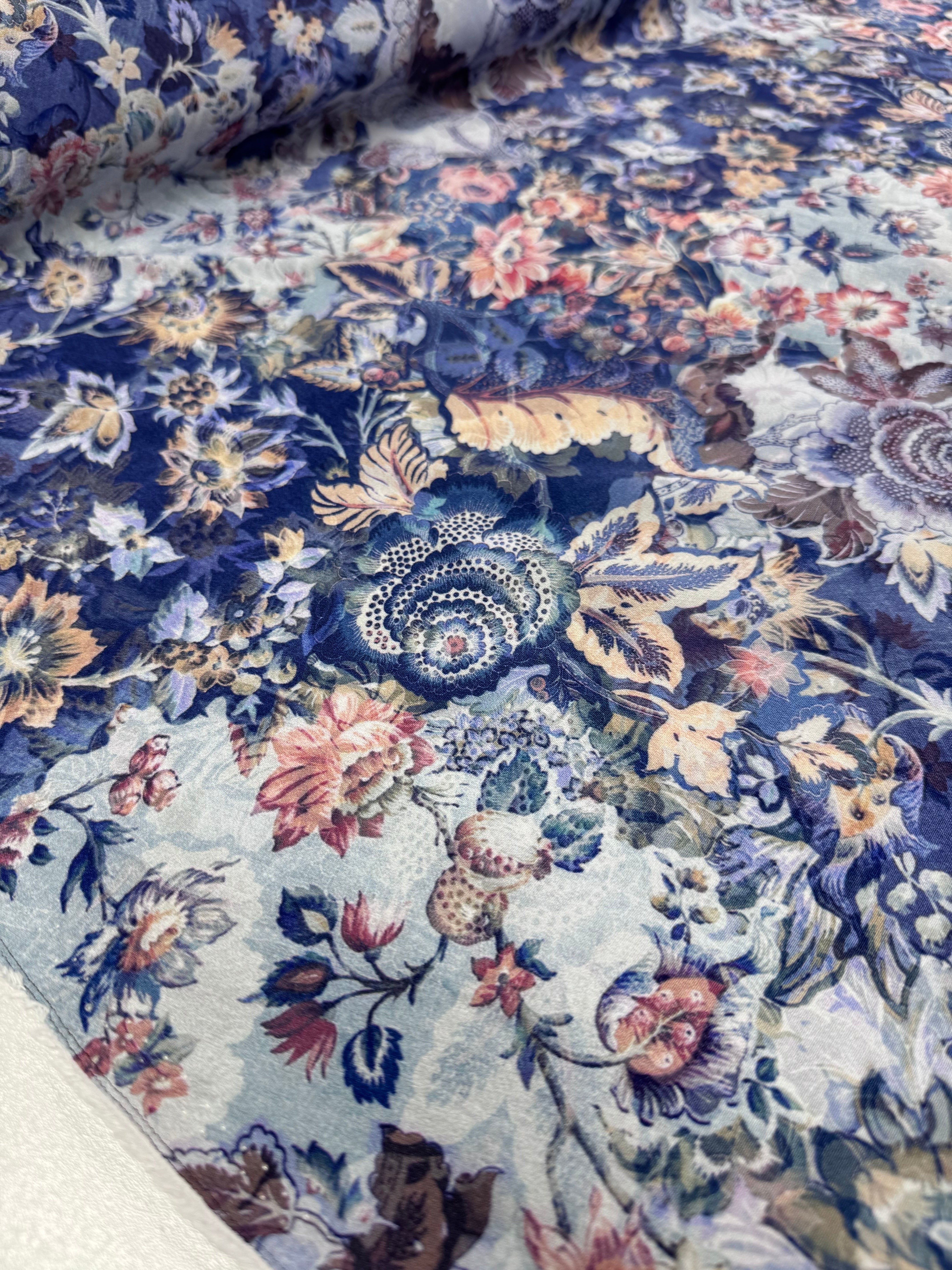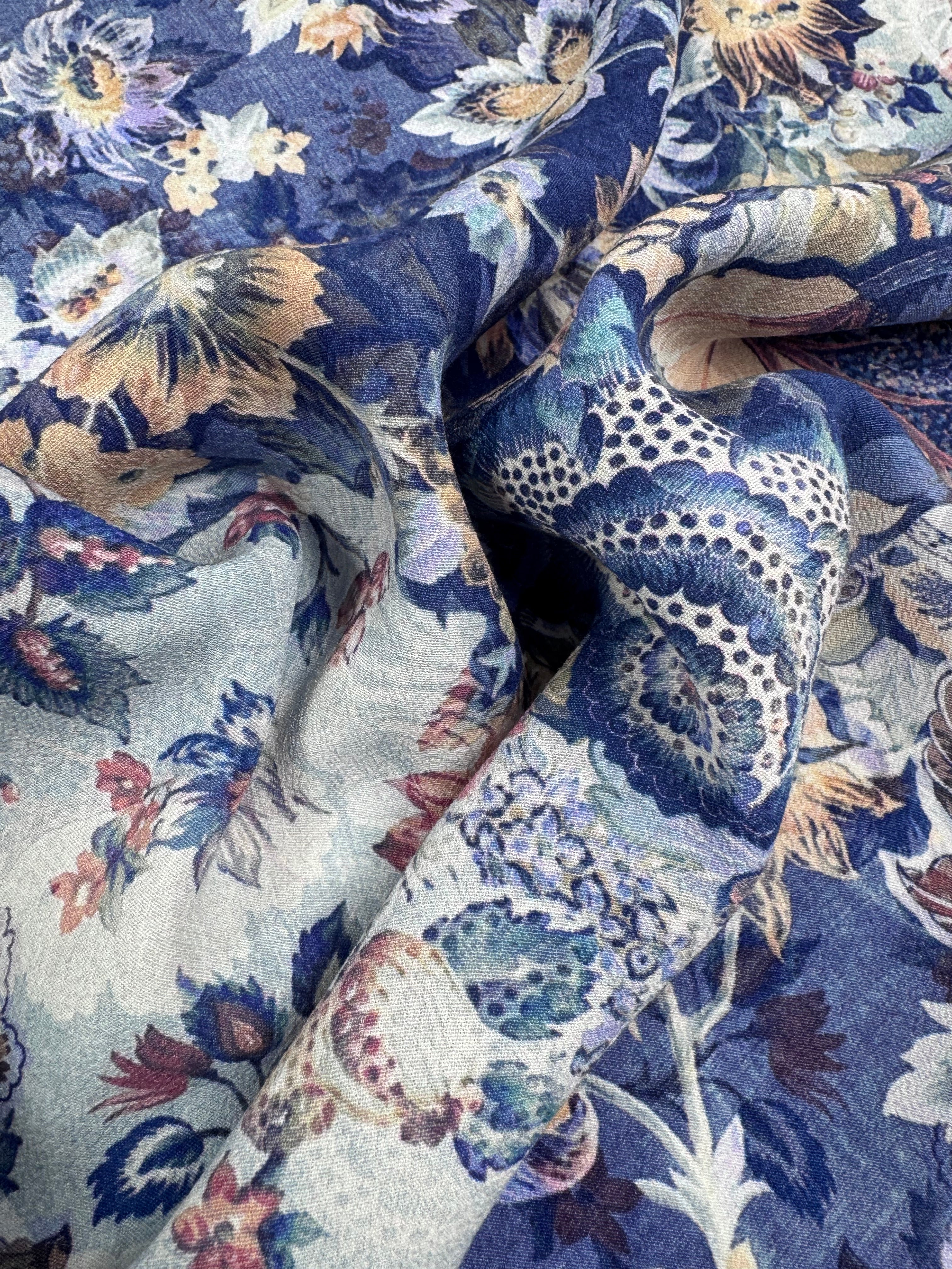 Printed Crepe - Indigo Tapestry - 125cm