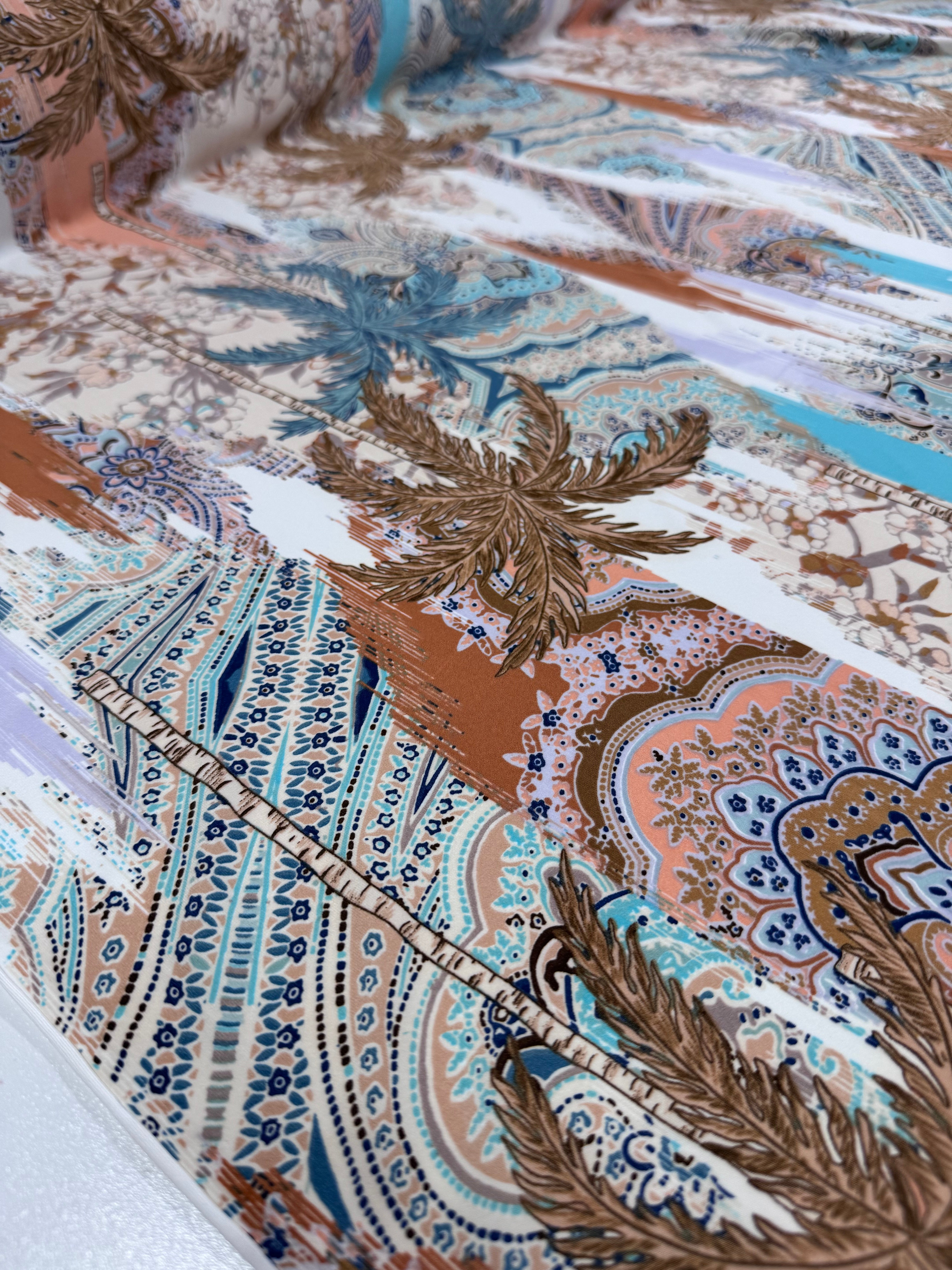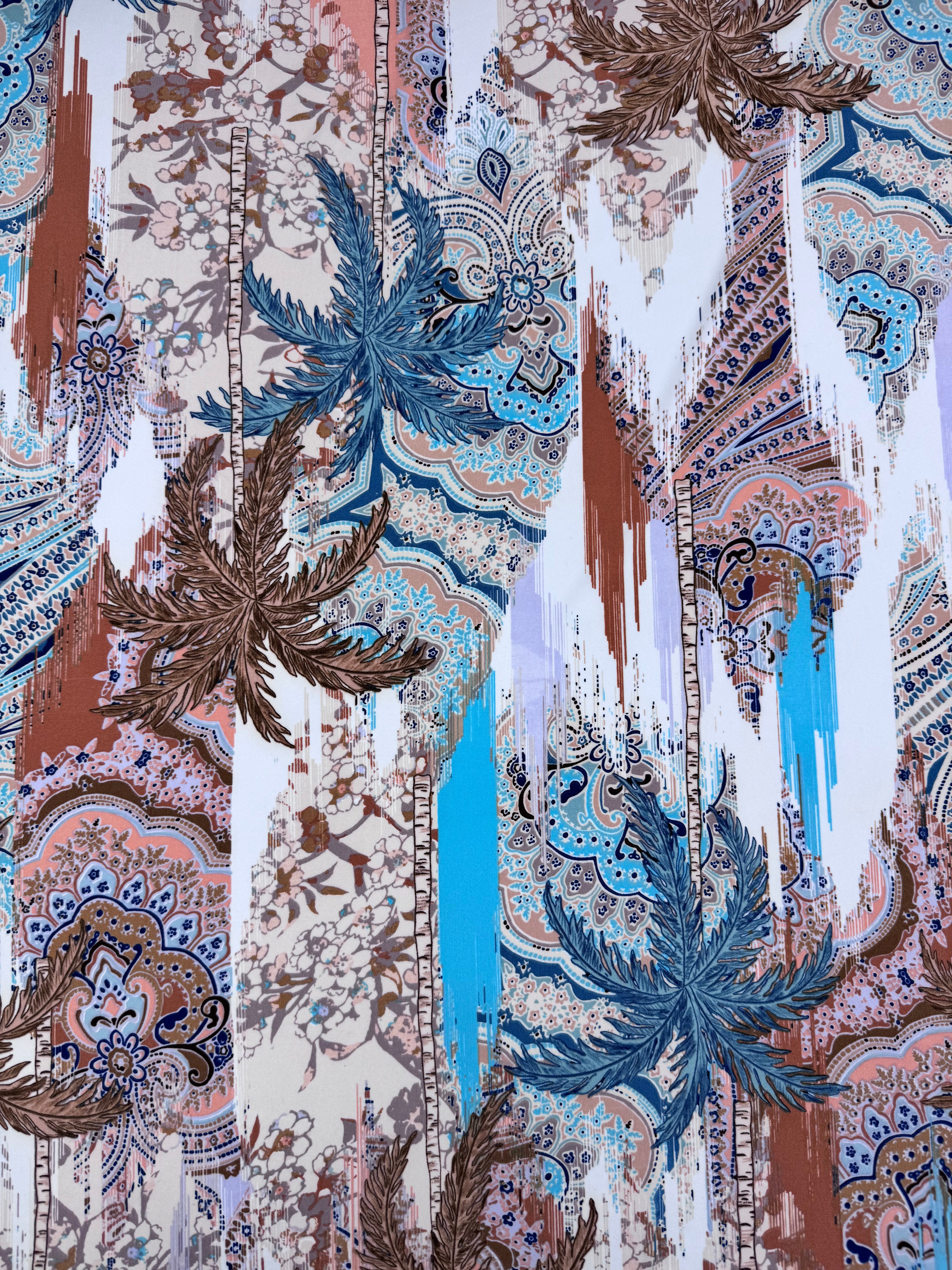 Our Printed Lycra is a Polyester/Spandex fabric that has a two-way stretch and comes in a variety of beautiful prints! Printed Lycra is a medium-weight fabric, has good durability and stretch, and washes well. Our Lycras are perfect for making tops, dresses, skirts, pants, accessories, and even childrenswear.
