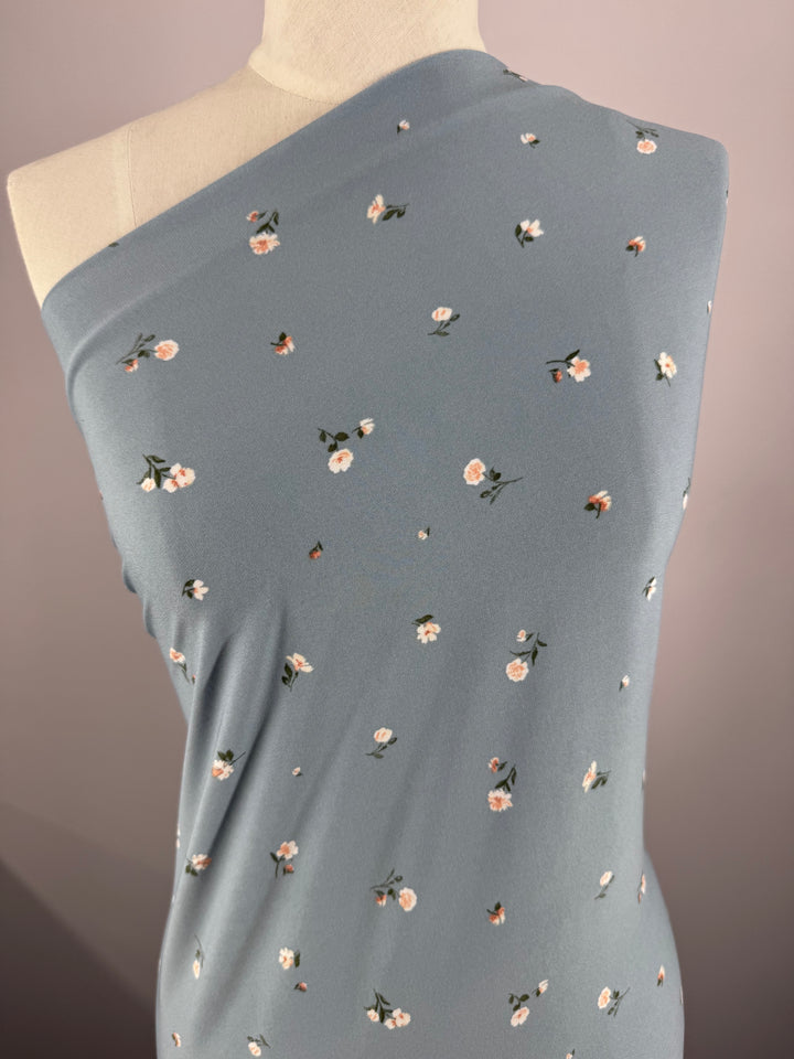 Our Printed Lycra is a Polyester/Spandex fabric that has a two-way stretch and comes in a variety of beautiful prints! Printed Lycra is a medium-weight fabric, has good durability and stretch, and washes well. Our Lycras are perfect for making tops, dresses, skirts, pants, accessories, and even childrenswear. An intricate multi-coloured paisley with teal, orange, pink, and green accents.