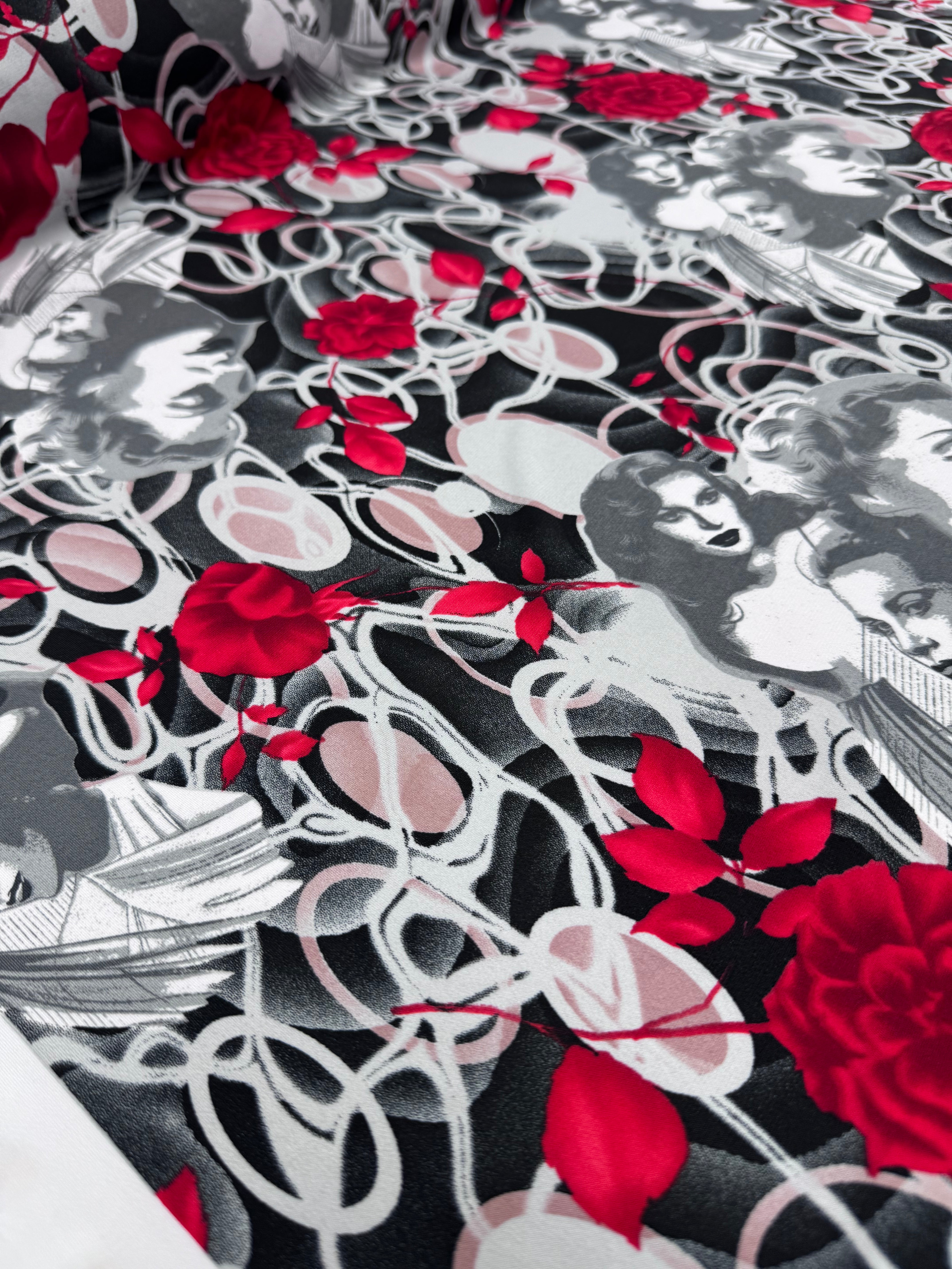 Our Printed Lycra is a Polyester/Spandex fabric that has a two-way stretch and comes in a variety of beautiful prints! Printed Lycra is a medium-weight fabric, has good durability and stretch, and washes well. Our Lycras are perfect for making tops, dresses, skirts, pants, accessories, and even childrenswear.