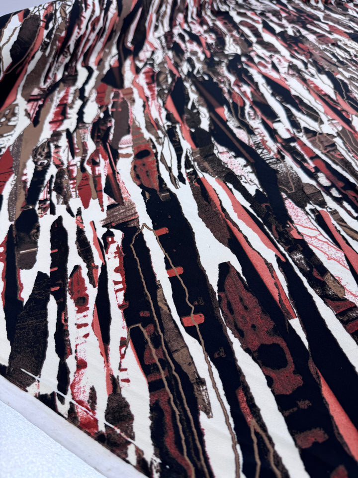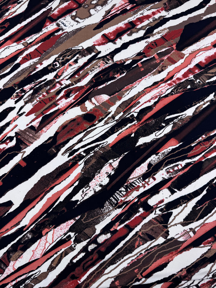 Our Printed Lycra is a Polyester/Spandex fabric that has a two-way stretch and comes in a variety of beautiful prints! Printed Lycra is a medium-weight fabric, has good durability and stretch, and washes well. Our Lycras are perfect for making tops, dresses, skirts, pants, accessories, and even childrenswear.