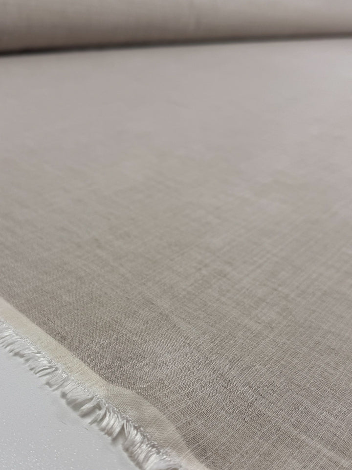 A soft neutral beige pure linen fabric with an organic woven texture.
