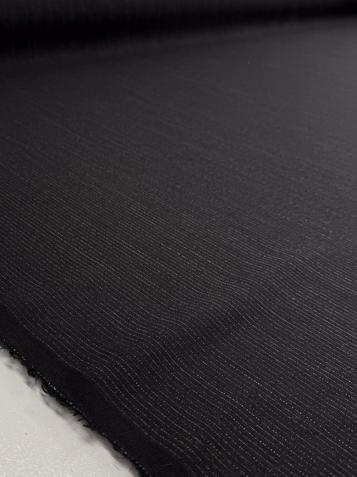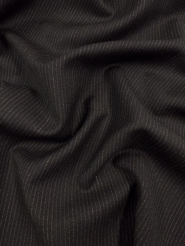 Pure Wool Suiting - Pinstripe Black - 155cm