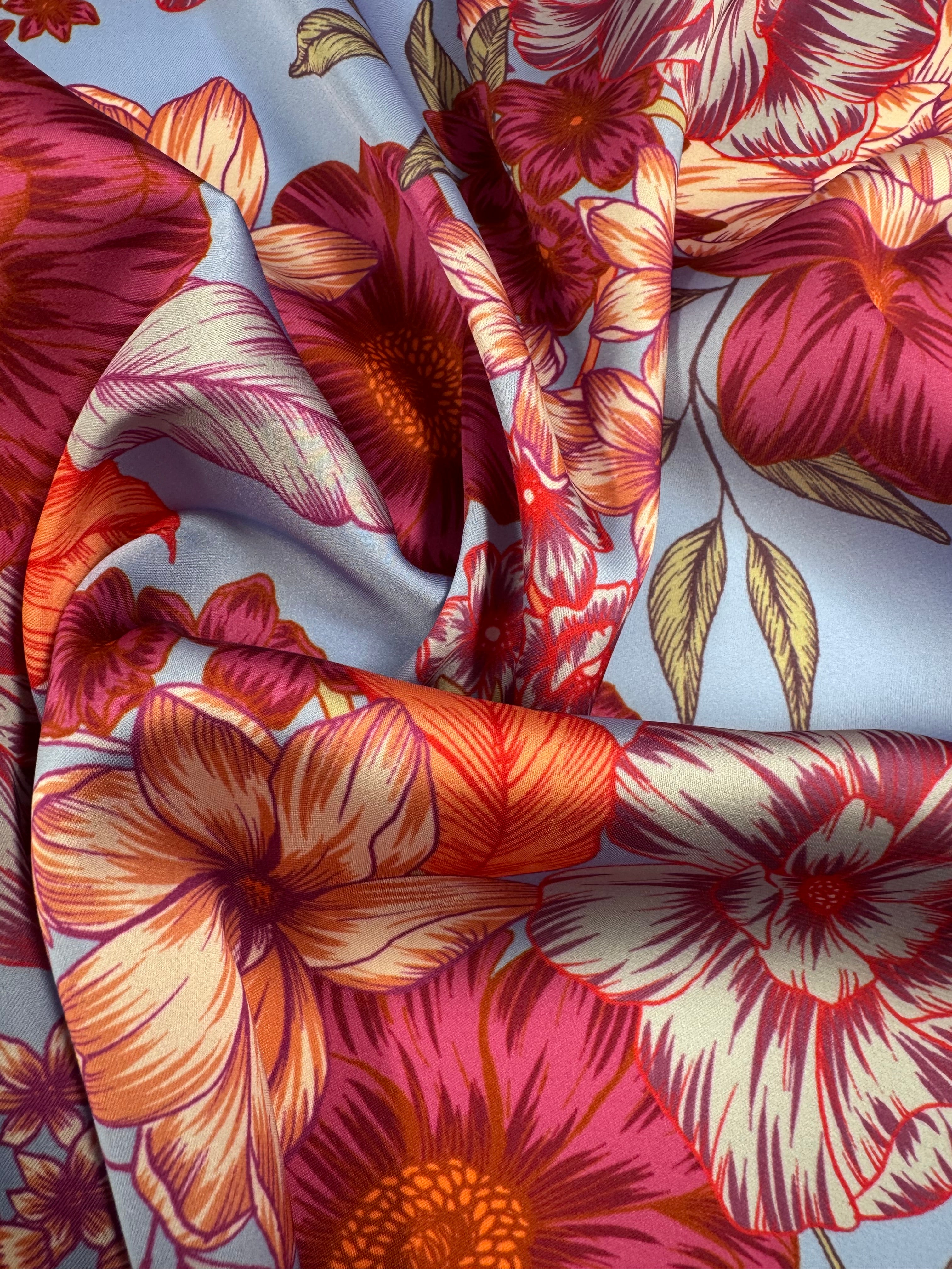 A matte, luxury fabric often used for nightgowns. Satin refers to the weave, not the textile, and most fabrics characterised as satin have a soft, shiny yet matte finish. No spandex however this satin has some give.