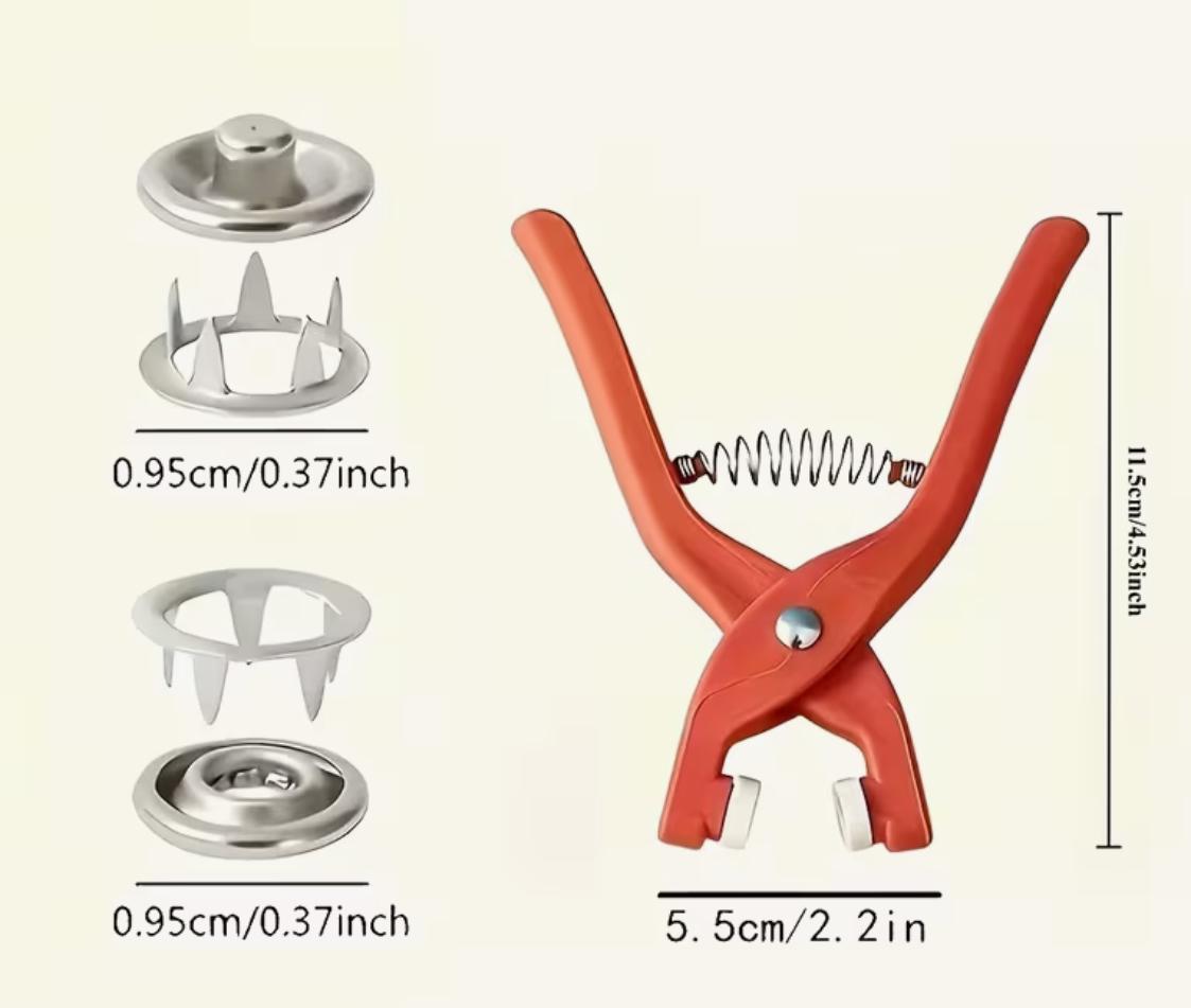 Easy-to-use snap button press tool designed for quick and secure installation of metal snap fasteners on fabrics. Ideal for clothing, crafts, babywear, and light upholstery projects. The ergonomic hand press ensures firm, even pressure for a clean finish every time. Suitable for thin to medium-weight fabrics. Includes snap fasteners for immediate use.
