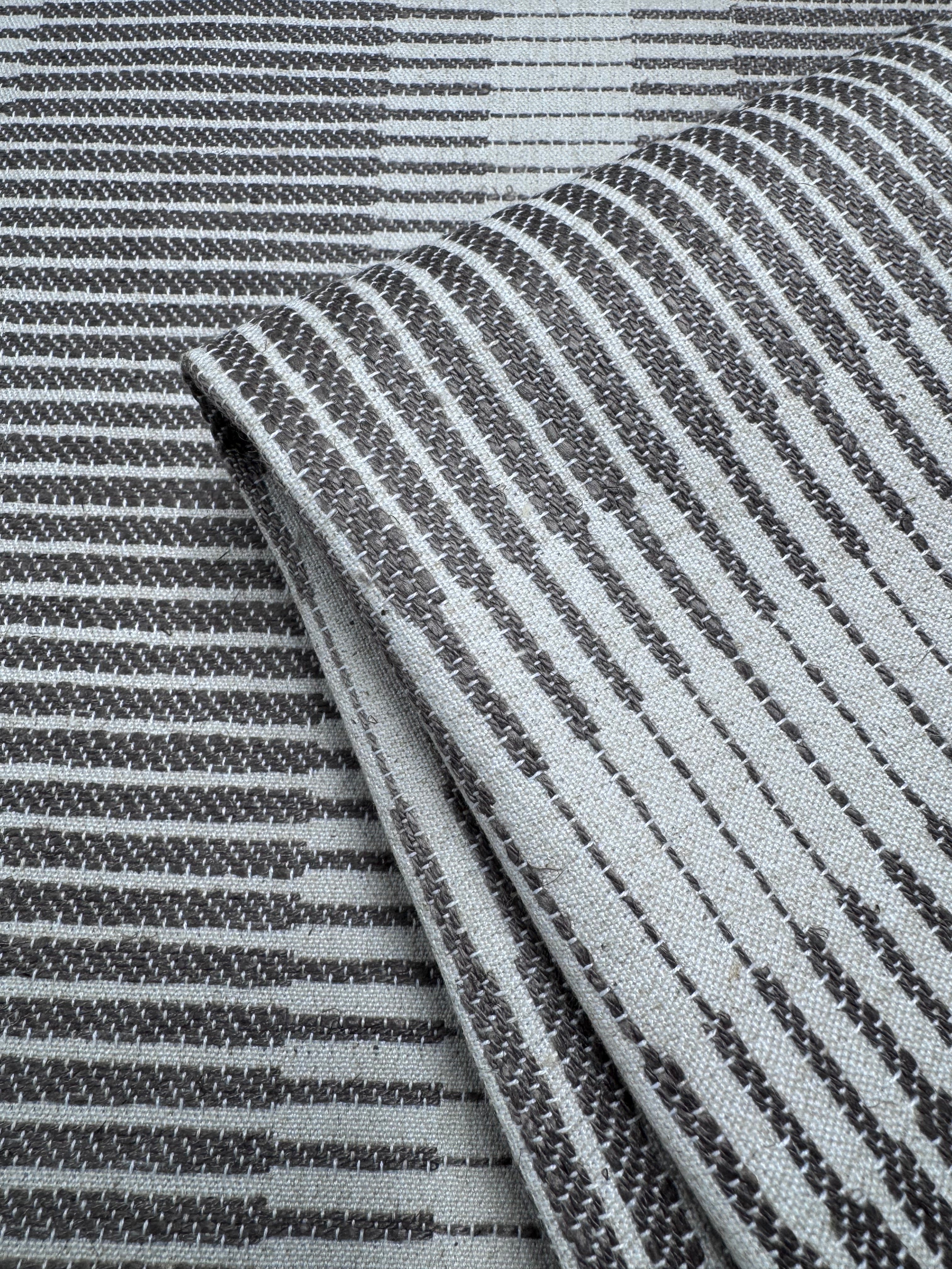 Pantone Cool Gray 9 C, off-white and charcoal woven stripe.
