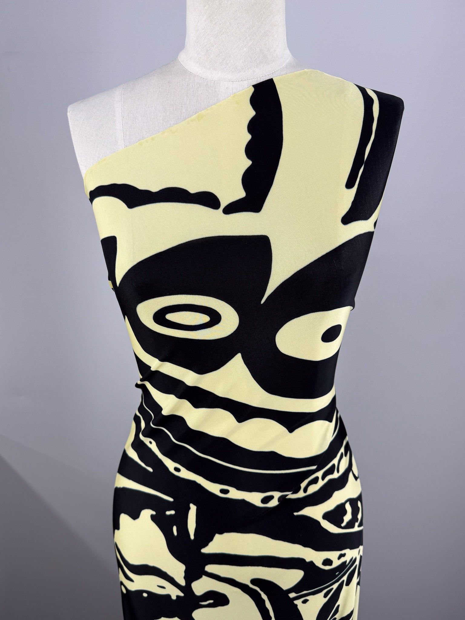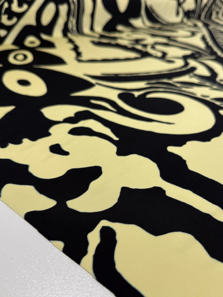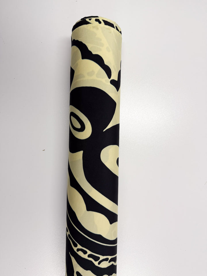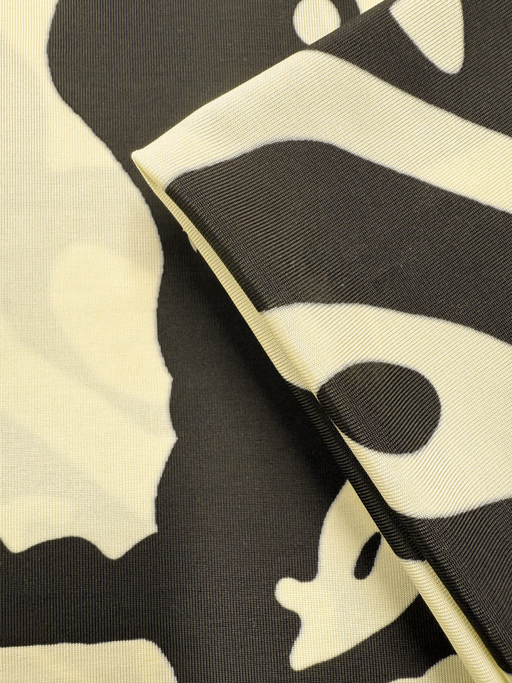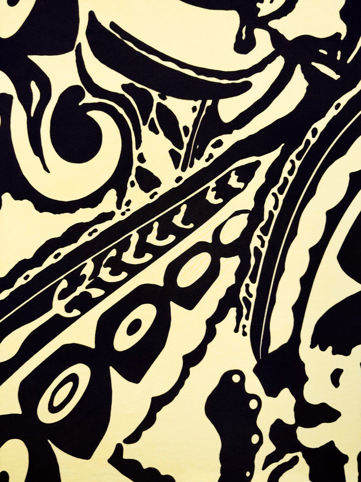 A cream base with inky black swirls. A bold and artistic, viscose knit.