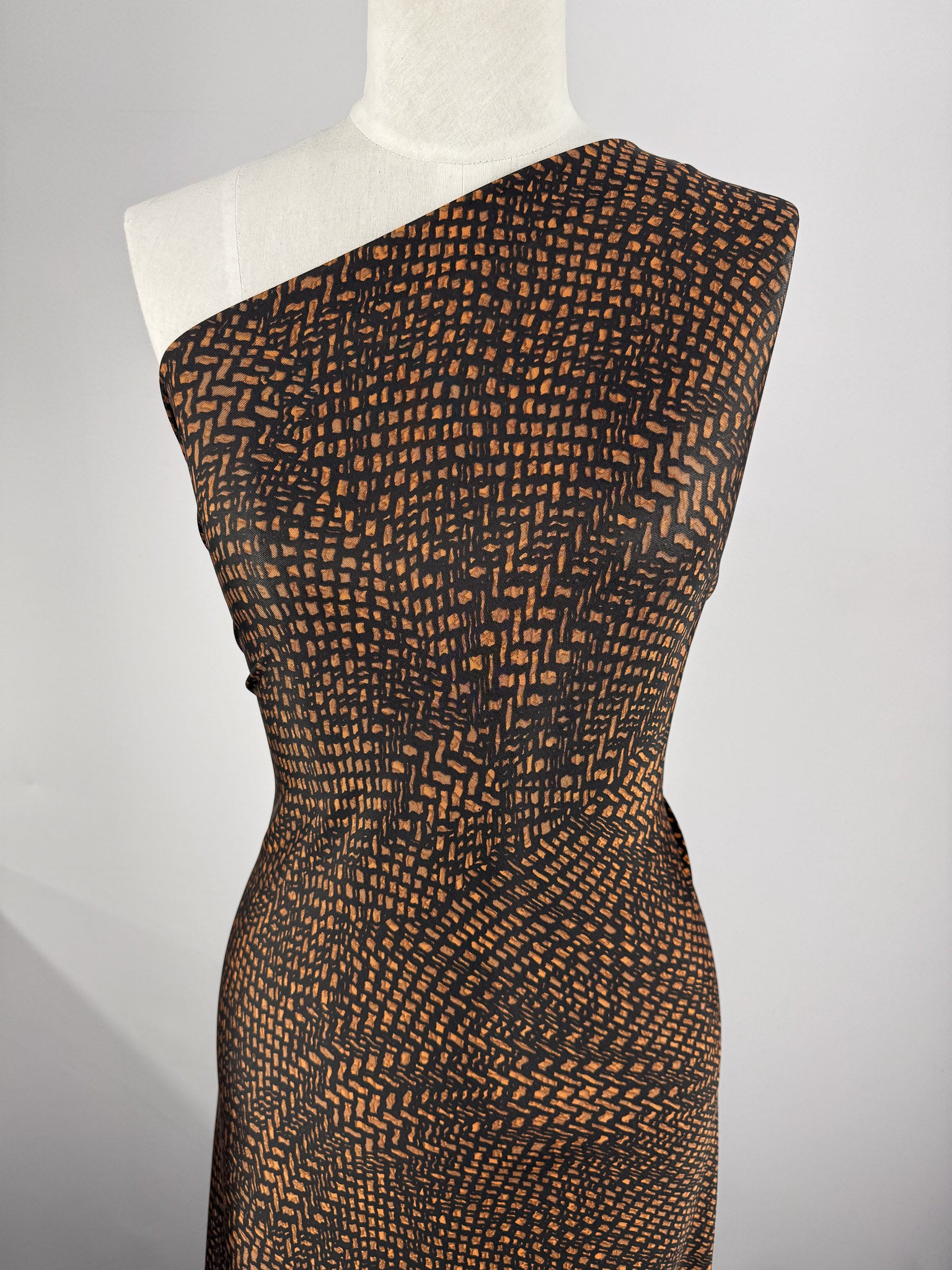 A warm, textured viscose knit check with a subtle woven look. Earthy and rich.