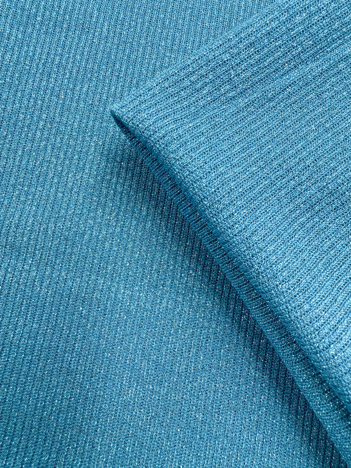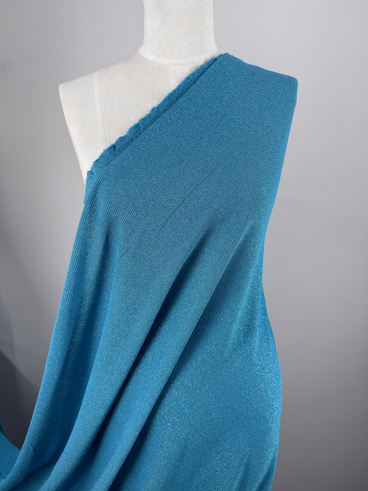 A silver grey viscose lurex knit with a clean, refined finish, added metallic effect from lurex.