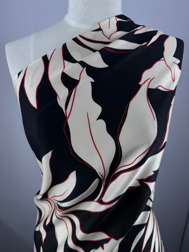 Satin Back Crepe Gentle Machine Wash in cold water. Wash seperately. Do not soak, bleach or wring dry. Dry away from direct sunlight or heat. Do not tumble dry. Cool iron only. Dry-cleanable. |